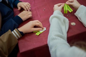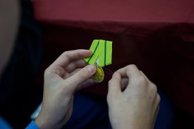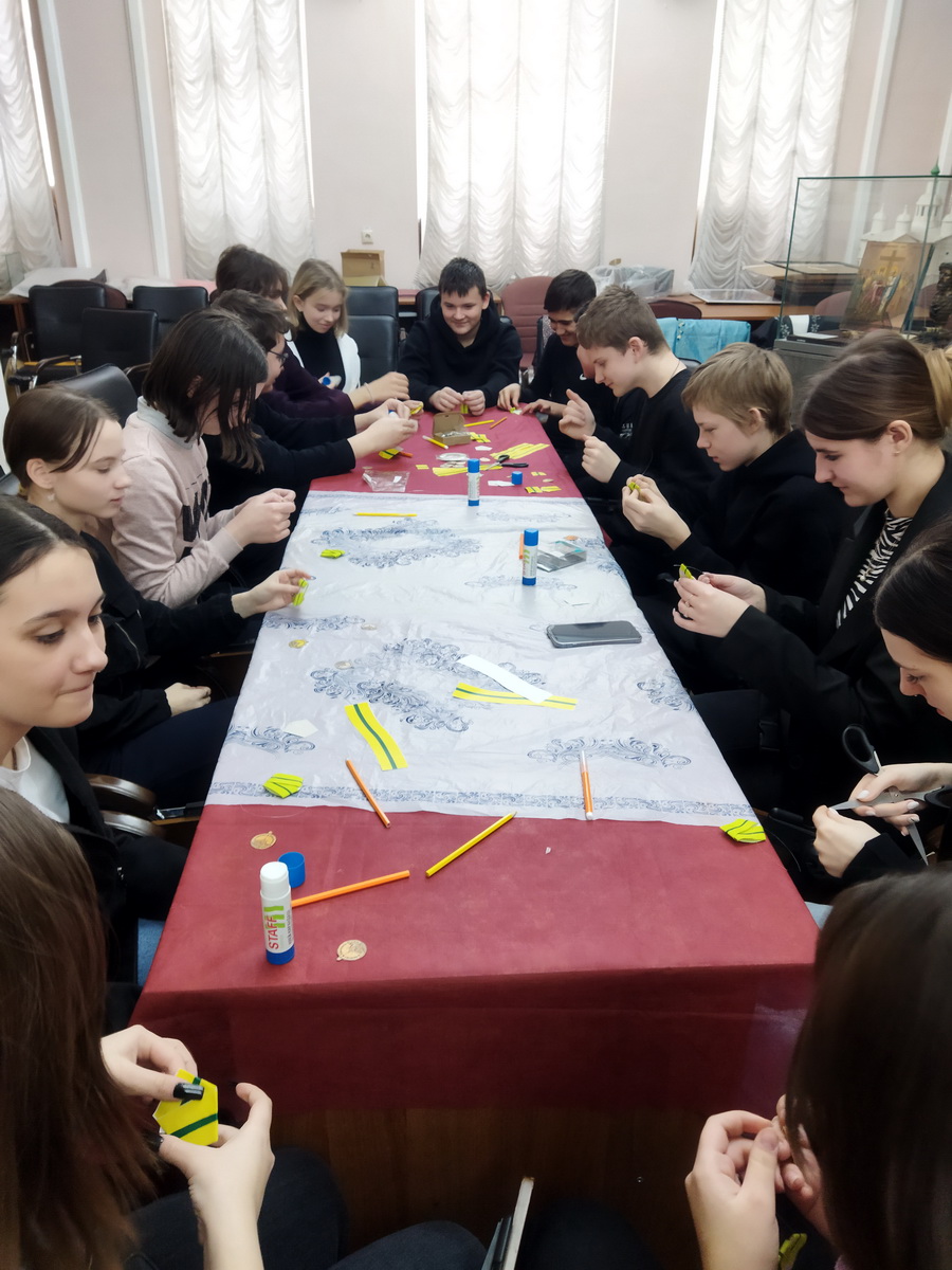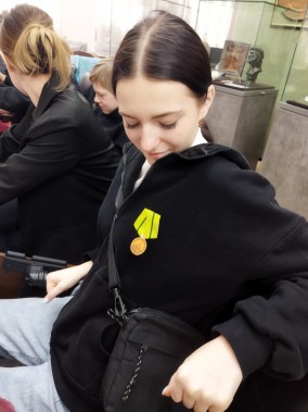 После урока ребята сделали медаль «За оборону Ленинграда». Дети были очень увлечены такой работой, очень старались, чтобы все правильно получилось. А затем все прикрепили медаль на грудь и сделали общее фото.