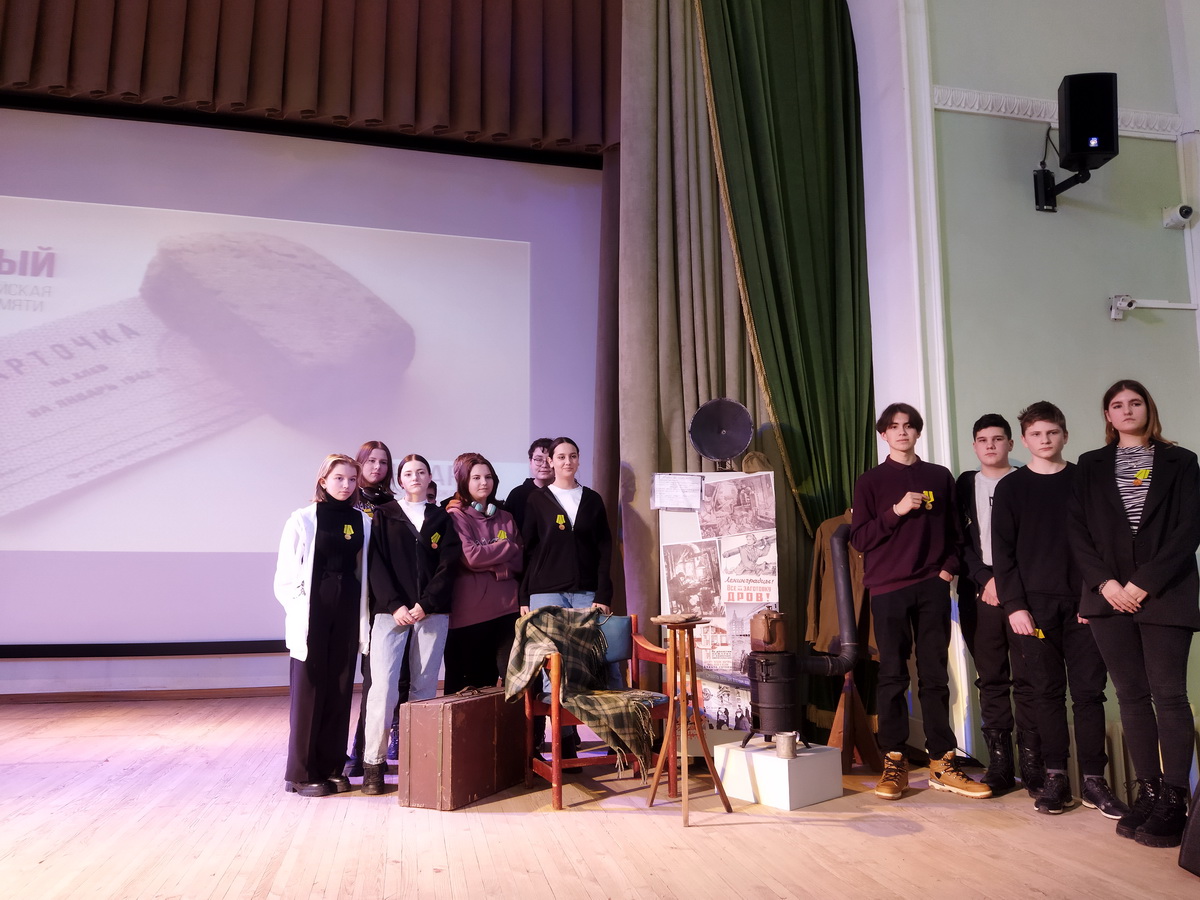 Дети познакомились с картинами художников из альбома «Дети блокады» с портала Виртуального Русского музея, которые работали в блокадном Ленинграде и запечатлели улицы города, музеи, жителей и детей города. Ребята посмотрели фрагмент из художественного фильма «Жила-была девочка». Участники слушали объявления о начале войны, прорыве блокады, а также фрагмент симфонии Шостаковича.