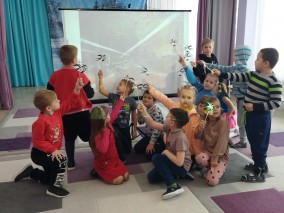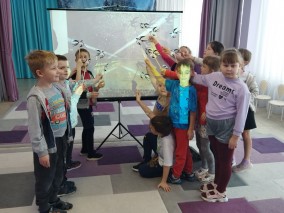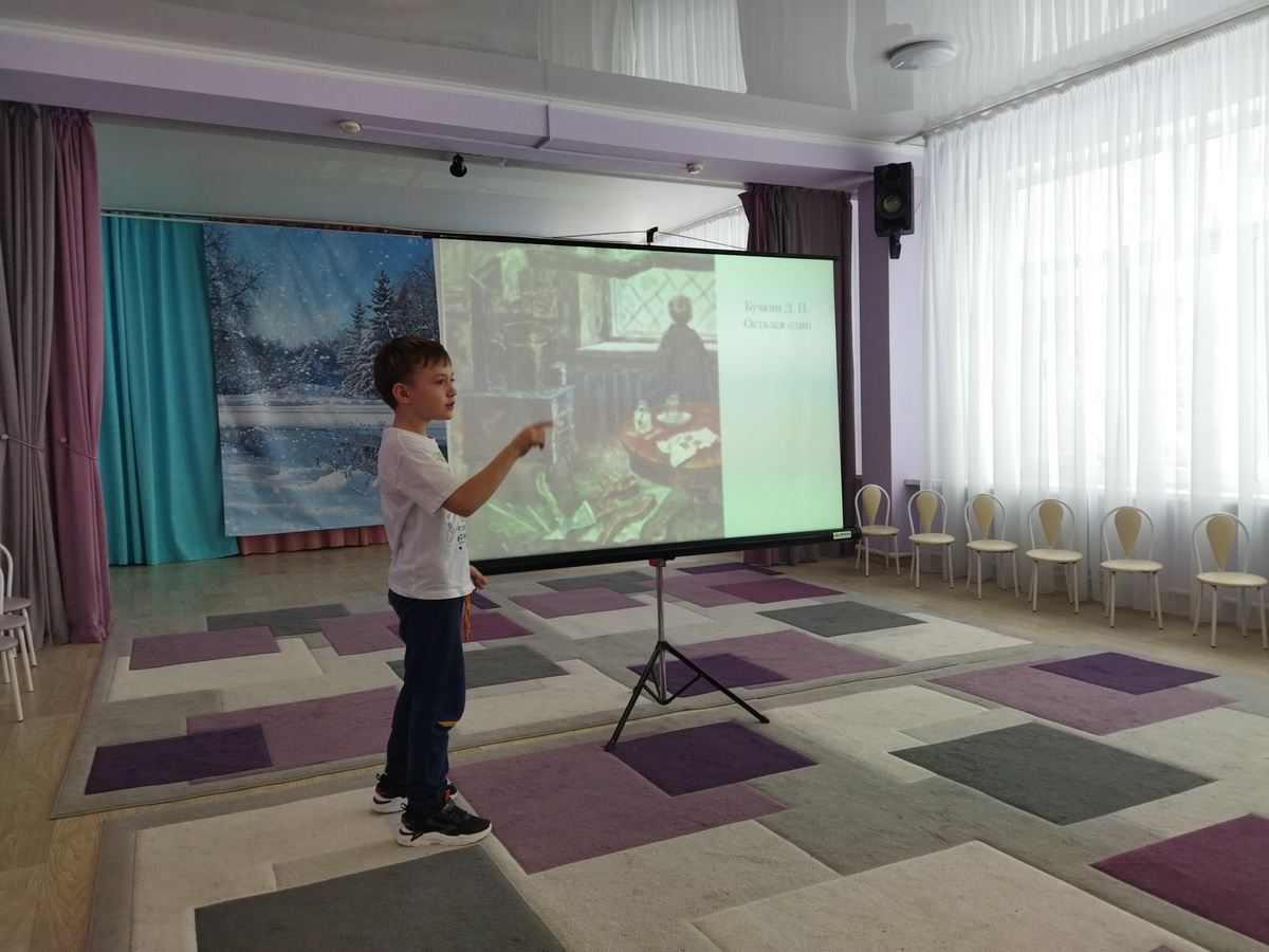 Дети познакомились с картинами художников из альбома «Дети блокады» с портала Виртуального Русского музея, которые работали в блокадном Ленинграде и запечатлели улицы города, музеи, жителей и детей города. Ребята посмотрели фрагмент из художественного фильма «Жила-была девочка». Участники слушали объявления о начале войны, прорыве блокады, а также фрагмент симфонии Шостаковича.