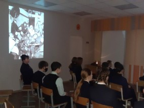 23 января 2024 года в Лодейнопольском центре внешкольной работы "Дар" в рамках проекта «Русский музей: виртуальный филиал» для учеников 7-х классов МКОУ «СОШ № 3 им. Героев Свири» состоялся Час Памяти «Нам эти даты позабыть нельзя », посвященный 80-летию со дня снятия блокады Ленинграда.