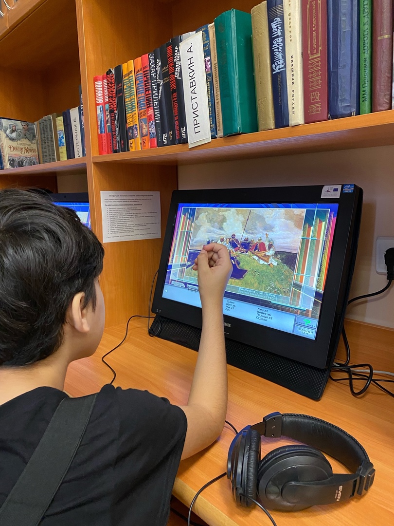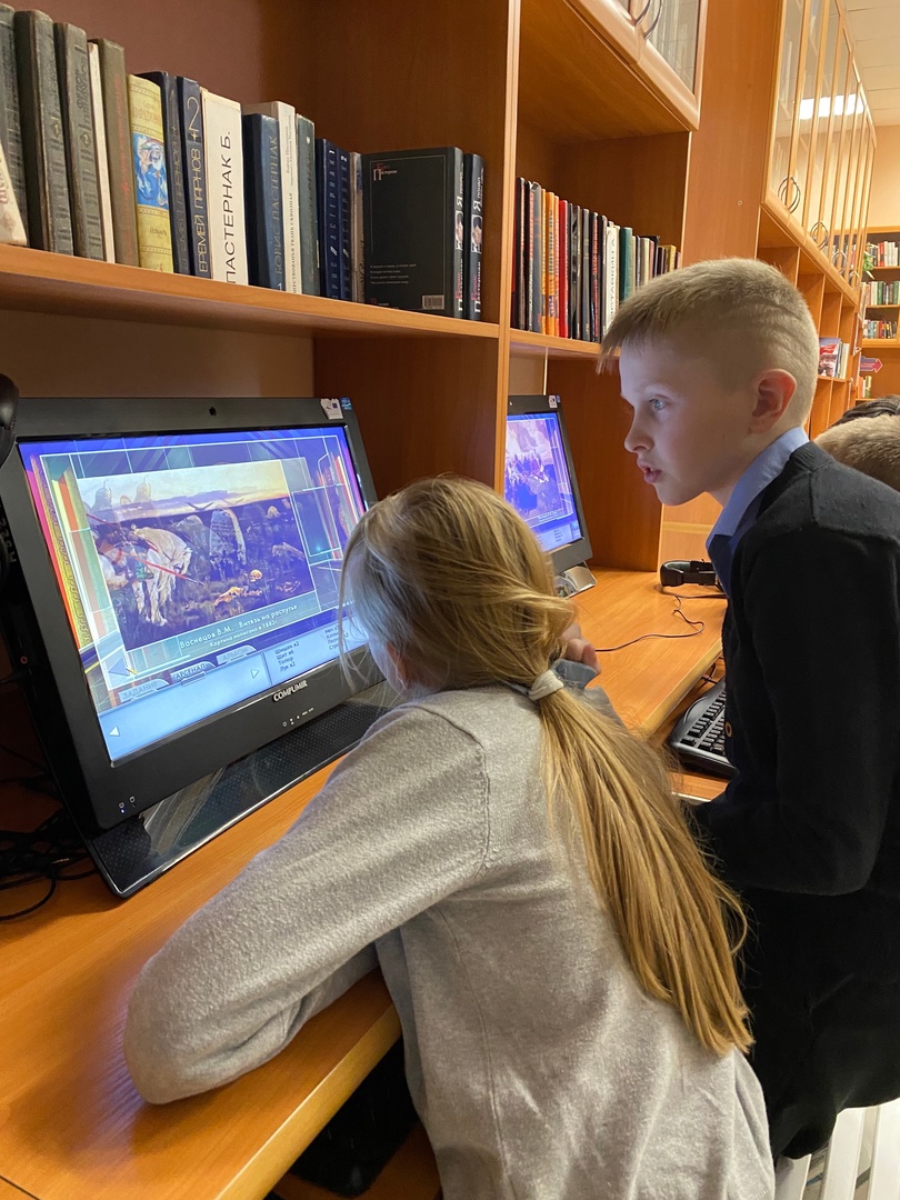 В конце мероприятия школьники прошли игру из медиатеки виртуального филиала «России воины-сыны» , где более подробно рассмотрели картины на военную тему русских художников баталистов.