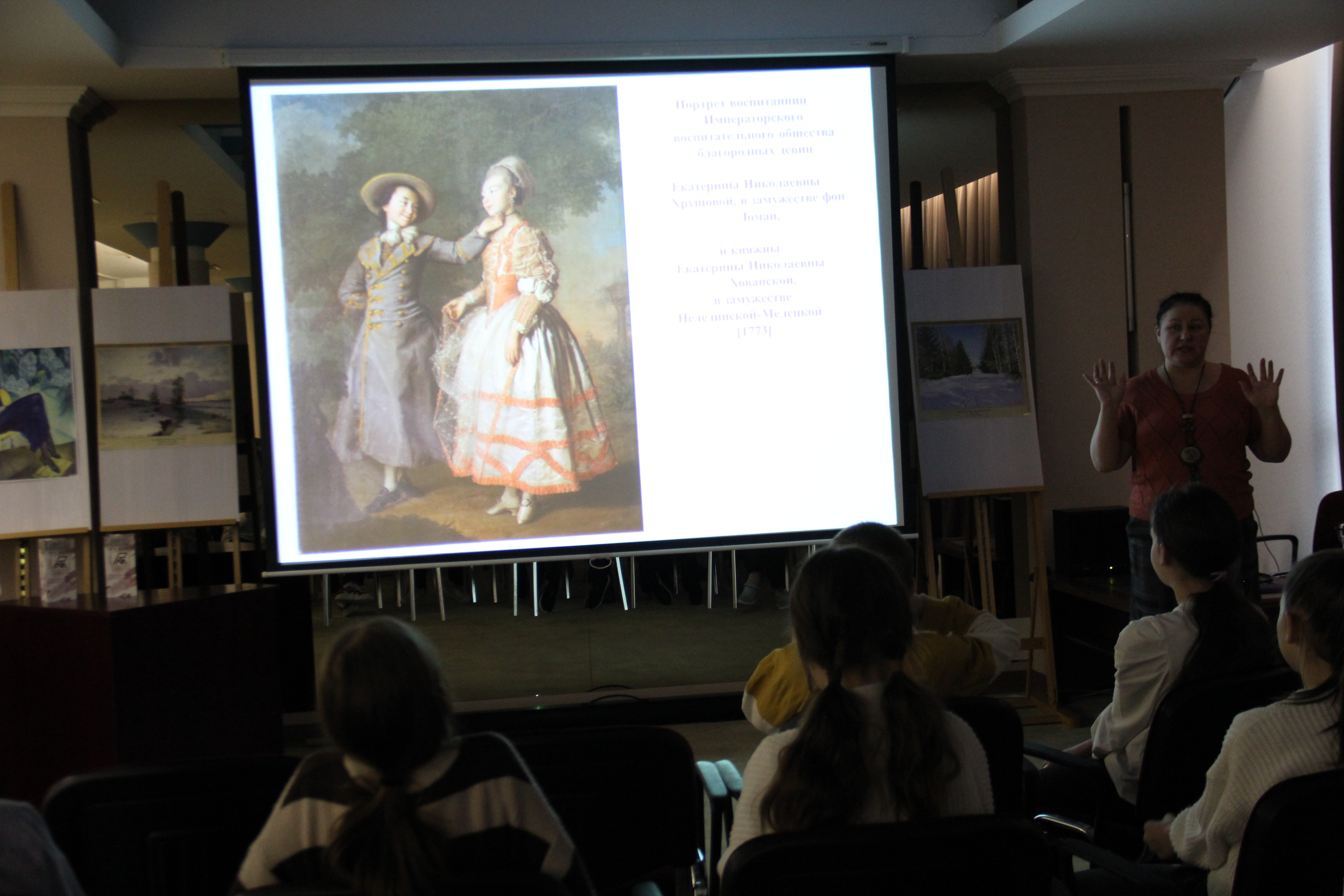 На экскурсии ребята познакомились с творчеством Д. Левицкого, рассмотрели портреты юных дворянок 18 века. Узнали, сколько длилось обучение, о повседневной жизни и распорядке дня в институте. Например, о том, что форменные платья были разных цветов, по ним легко определялся приблизительный возраст учениц; все «смолянки» должны были являть собой образец скромности. Они носили одинаковую одежду и прически. В институте царили простота и однообразие, а дисциплинированность и порядок ценились превыше всего. Самое важное и волнительное событие в Смольном - публичный экзамен, на котором присутствовали члены императорской семьи.