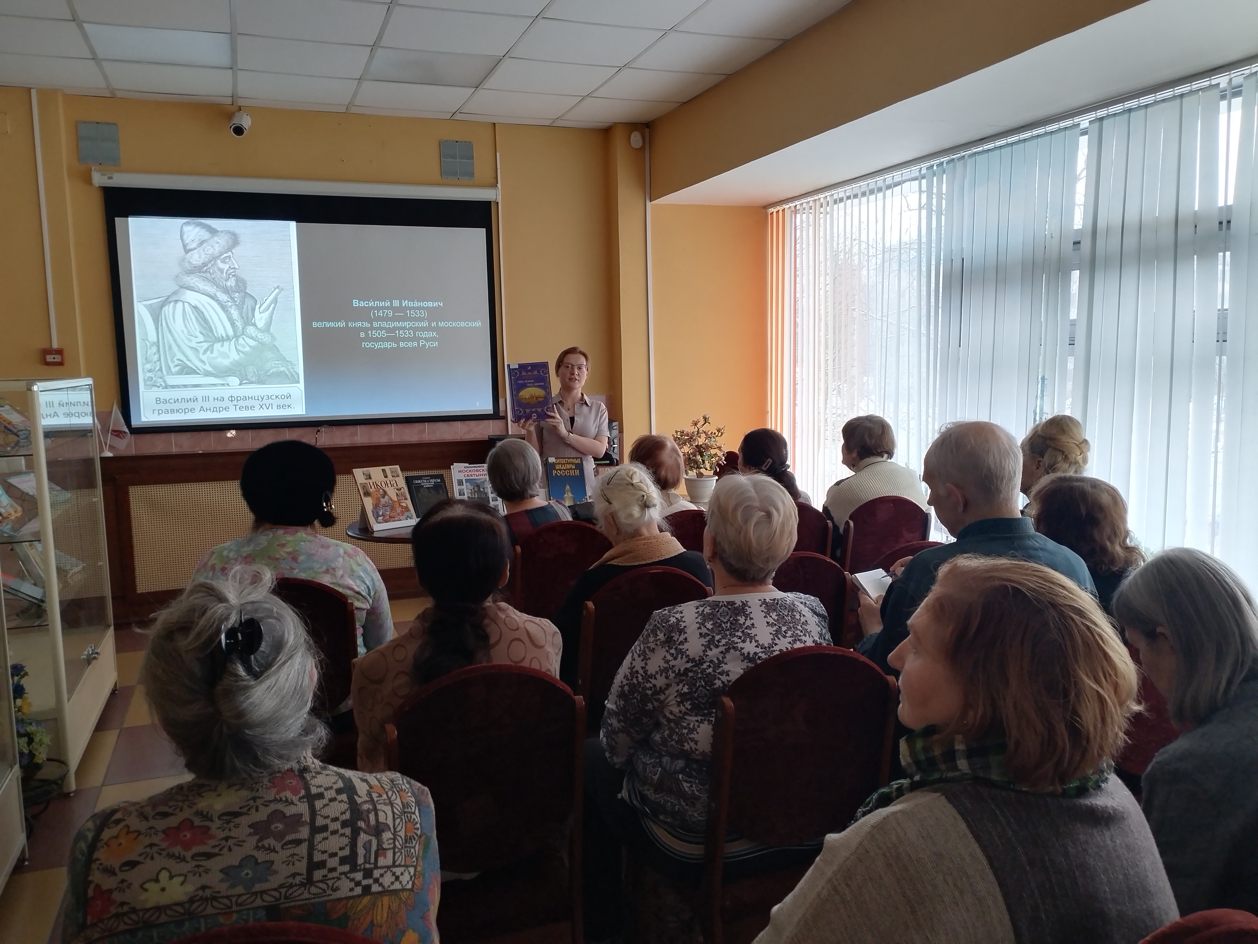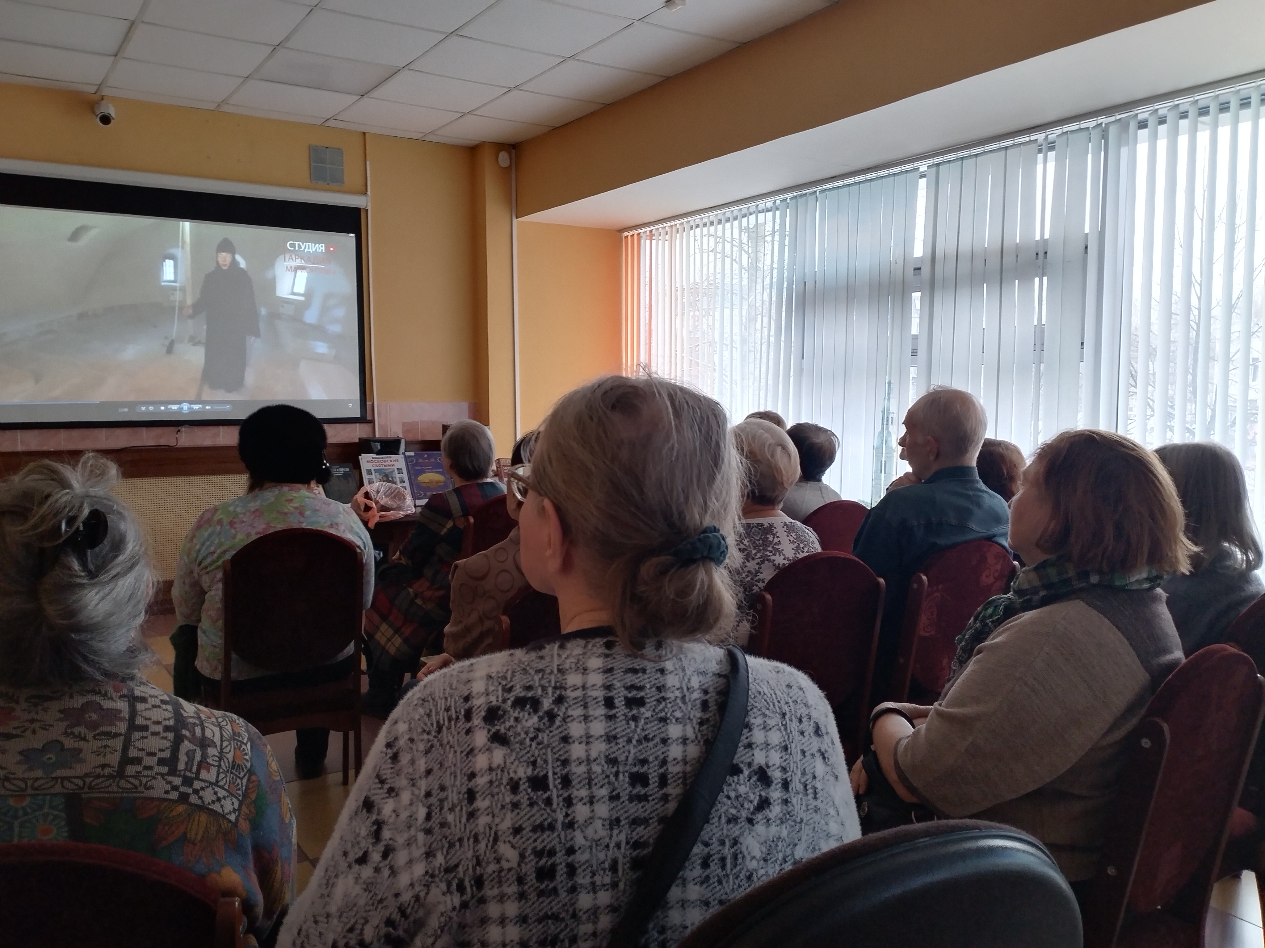В первой части встречи посетители библиотеки ознакомились с историей строительства знаменитой святыни. Затем прослушали блиц-обзор книг по теме мероприятия. Во второй части посмотрели документальный фильм Аркадия Мамонтова «Новодевичий монастырь. 500 лет истории».