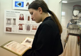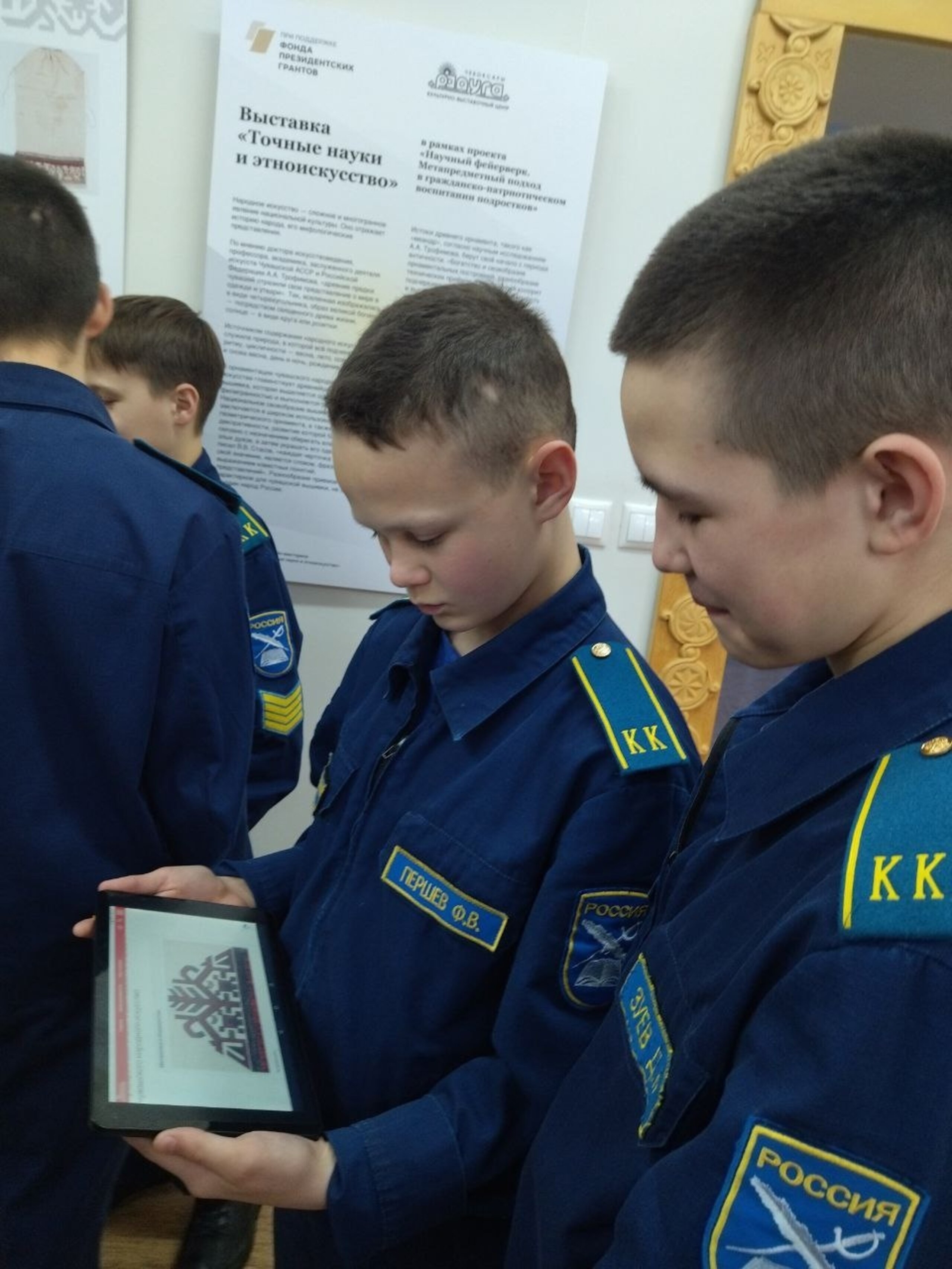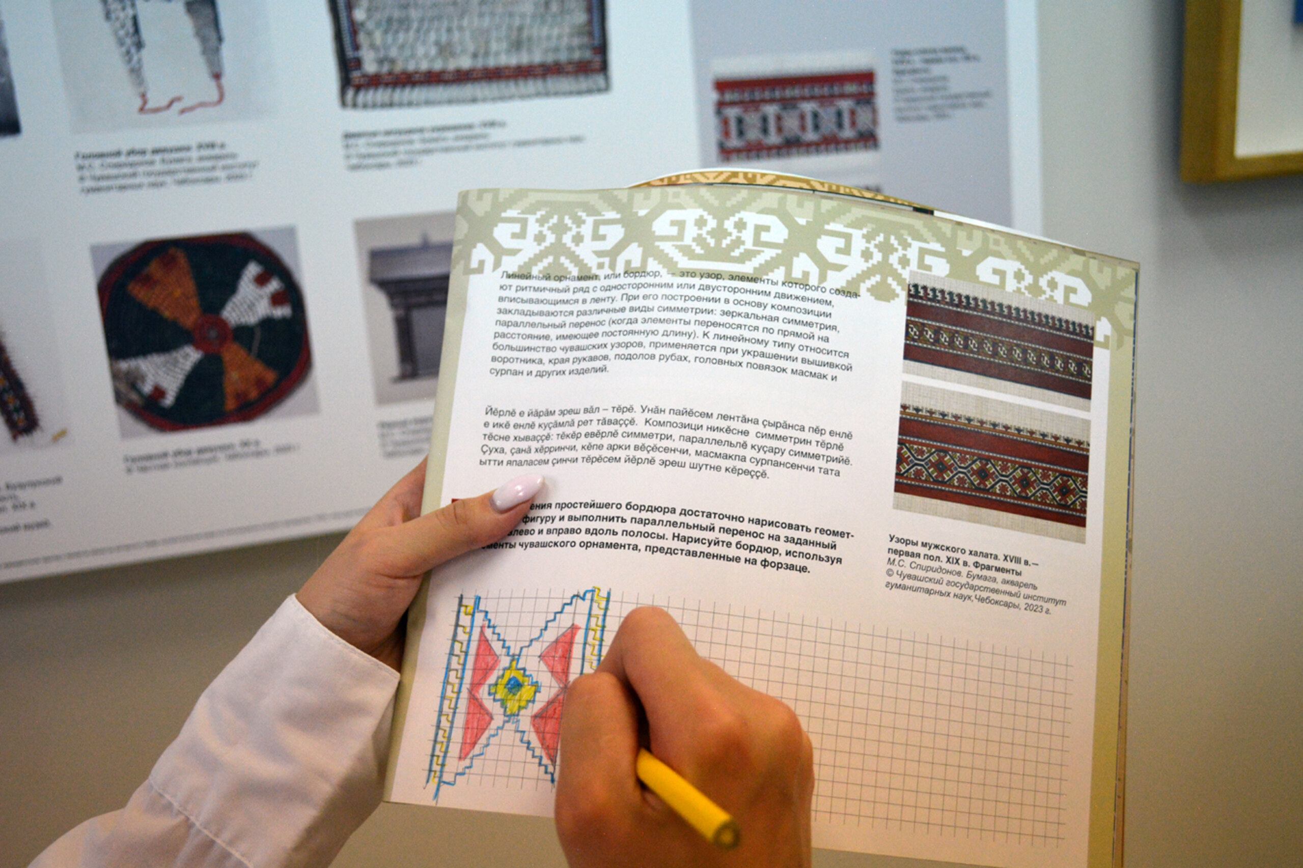 В Зале чувашской культуры КВЦ «Радуга» стартовали метапредметные экскурсии «Точные науки и этноискусство». Здесь открылась дидактическая выставка, созданная для проекта «Научный фейерверк. Метапредметный подход в гражданско-патриотическом воспитании подростков» при поддержке Фонда президентских грантов.