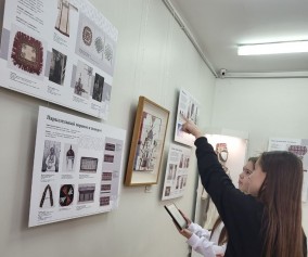 Закрепить полученные в ходе экскурсии знания о синтезе математики и этноискусства помогают материалы и задания альбома для чтения и творчества «Точные науки и этноикусство». Школьники узнают о 4 видах симметрии на примере чувашского орнамента, строят простейший бордюр из элементов с форзаца, знакомятся с понятием фрактала и их примерами в природе, видят, как геометрия нашла свое отражение не только в народном искусстве, но и в этнофутуристическом творчестве современных чувашских художников.