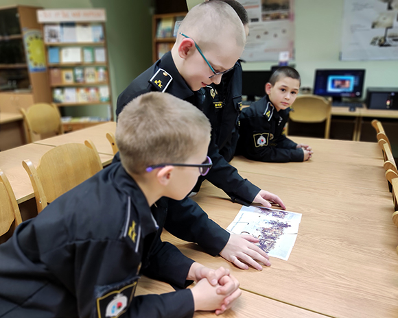 Ребята из 31 класса совершили игровое путешествие по картинам Василия Ивановича Сурикова. Они приняли участие в конкурсе «Собери слово», угадывали фрагменты репродукций картин и составили пазл самой жизнерадостной картины художника «Взятие снежного городка». Особенно активны были Березовский Никита, Исаев Тимофей, Конопкин Сергей, Киселев Максим, Сухомлин Владислав, Туголуков Максим.