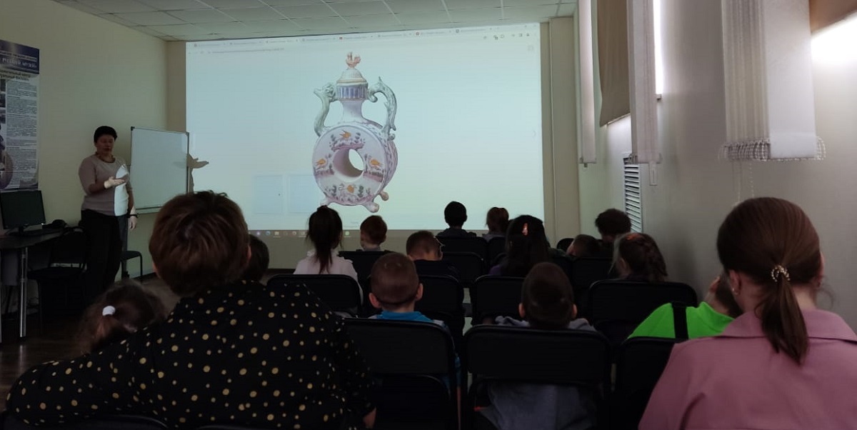 В коллекции музея находится множество удивительных предметов — от традиционных скопинских квасников и гжельских кувшинов до изысканных фарфоровых чайников, искусных стеклянных бокалов и вазочек от императорского стекольного завода. Дети рассматривали деревянные и металлические ковши и другую посуду: маслёнки, тарелки, блюдца и прочие экспонаты.