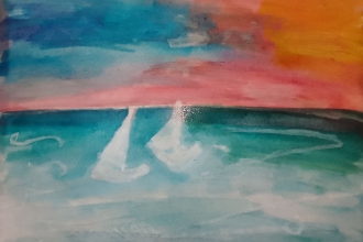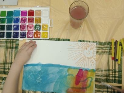 На занятии дети с родителями посмотрели фильм «Две бури. Иван Айвазовский» о произведениях из фондов Русского музея из цикла «Я и картина». Затем ребята рассказали о своих впечатлениях от работ выдающегося живописца, а на творческой части мероприятия нарисовали морские пейзажи, используя акварель и мелки.