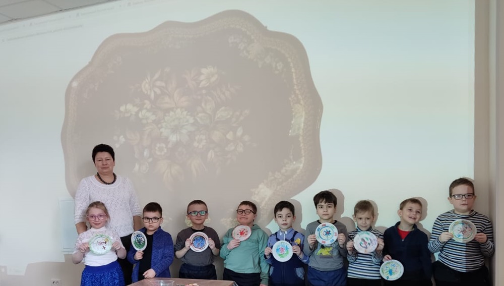 А потом юные художники сами попробовали расписать бумажные заготовки, вдохновленные мастерством художников – жостовских умельцев. Их работы получились не совсем аккуратными, но зато они были яркими и созданы от души!