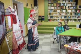 Юные художники Сланцевской детской художественной школы познакомились с русским народным костюмом, как женским, так и мужским. Узнали, чем отличаются костюмы друг от друга из разных регионов. Так же познакомились с зимней одеждой народов России. Мероприятие посетила Людмила Вацловна Аркадьева - представительница местной этнографической мастерской «Манефа», которая рассказала и наглядно продемонстрировала свой народный костюм. В конце встречи дети на бумаге создали свой костюм с индивидуальной историей.