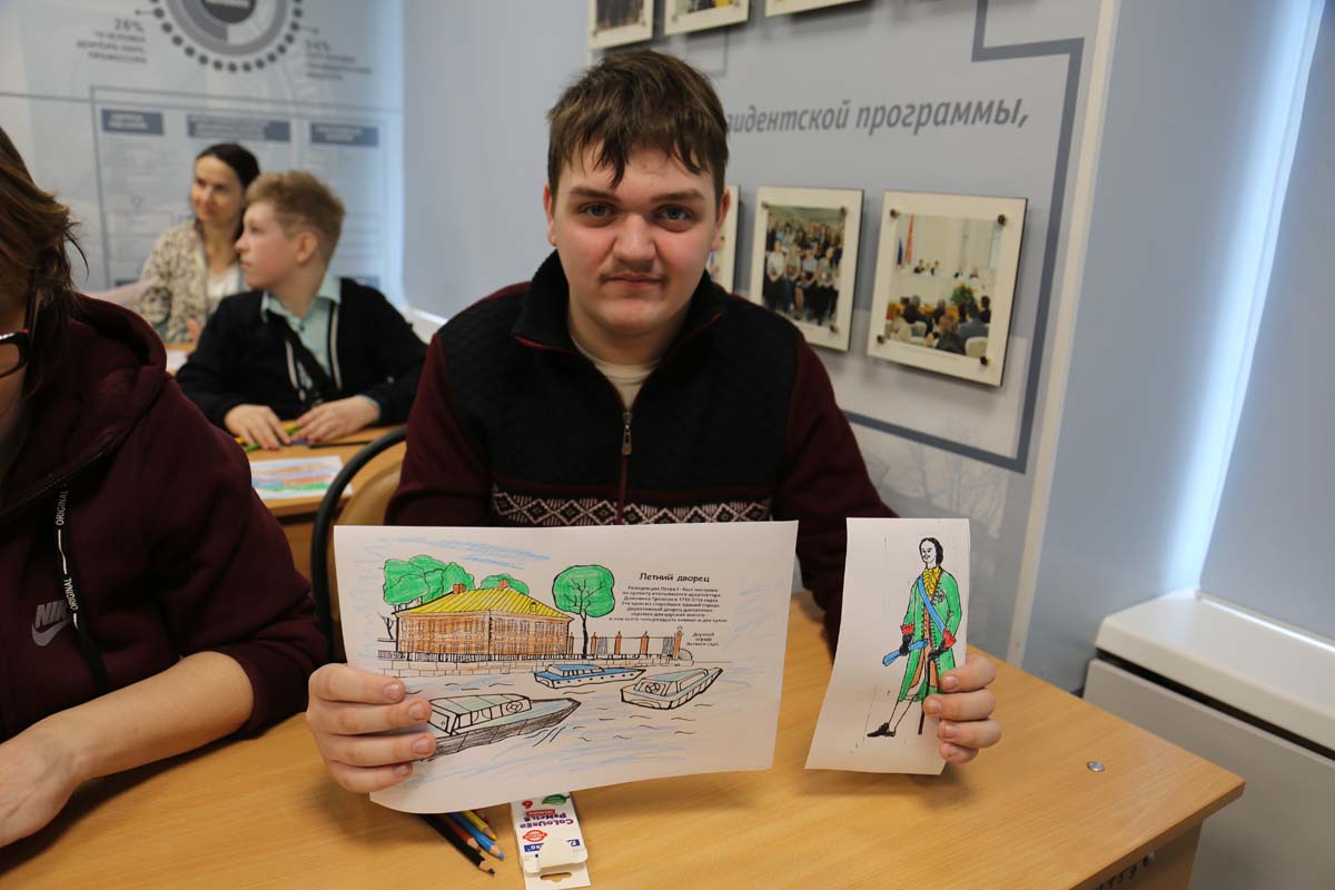 На маршруте «Познавательный» в информационном центре «Виртуальный филиал Русского музея», который работает в университете более 12-ти лет, была организована творческая мастерская, проведена познавательно-виртуальная экскурсия – знакомство с историей Санкт-Петербурга и Летним садом, заложенным по повелению Петра I, участники смогли приобщиться к русской живописи и скульптурному оформлению Летнего сада.