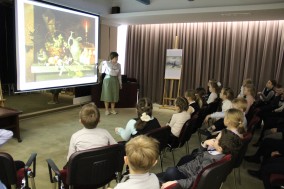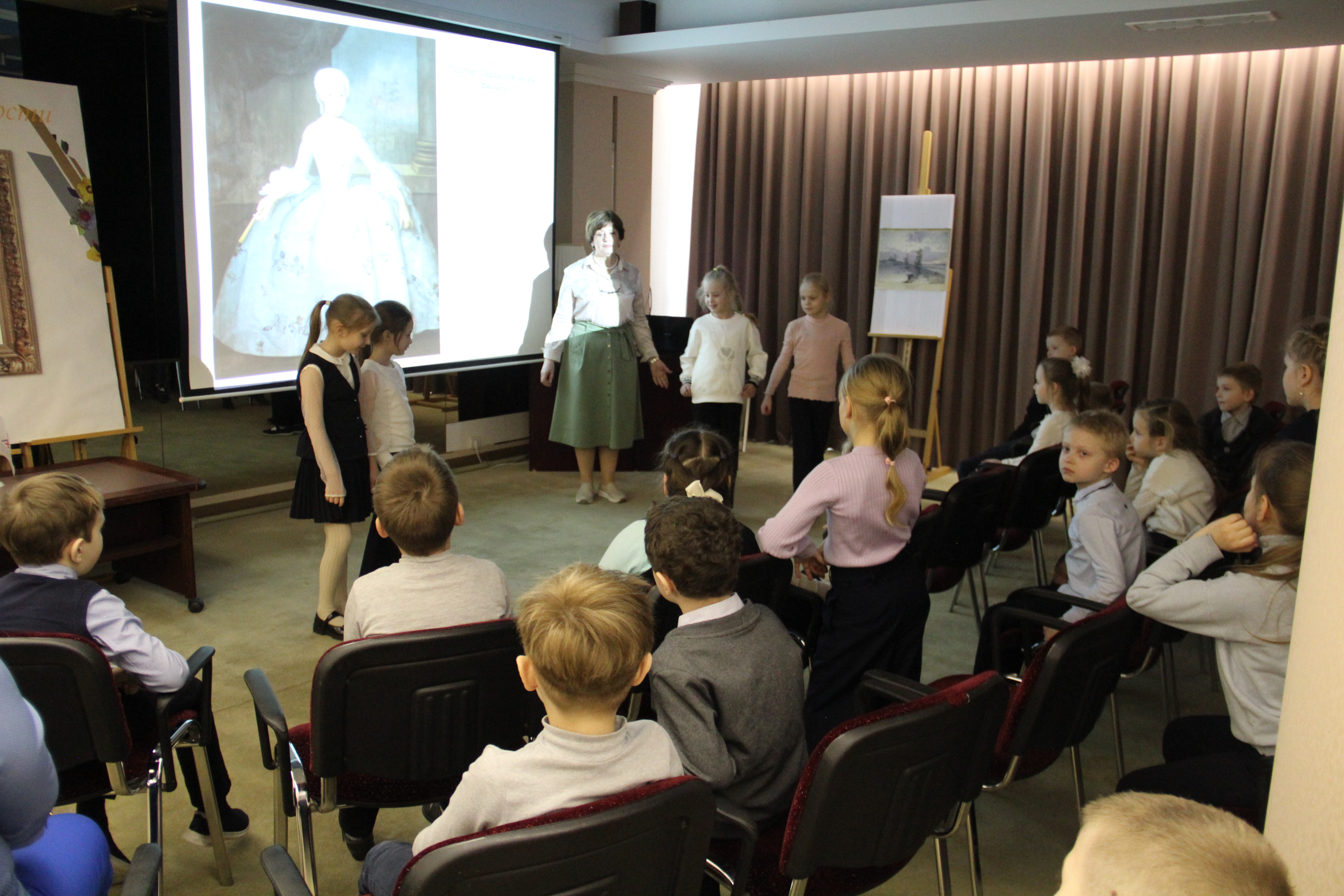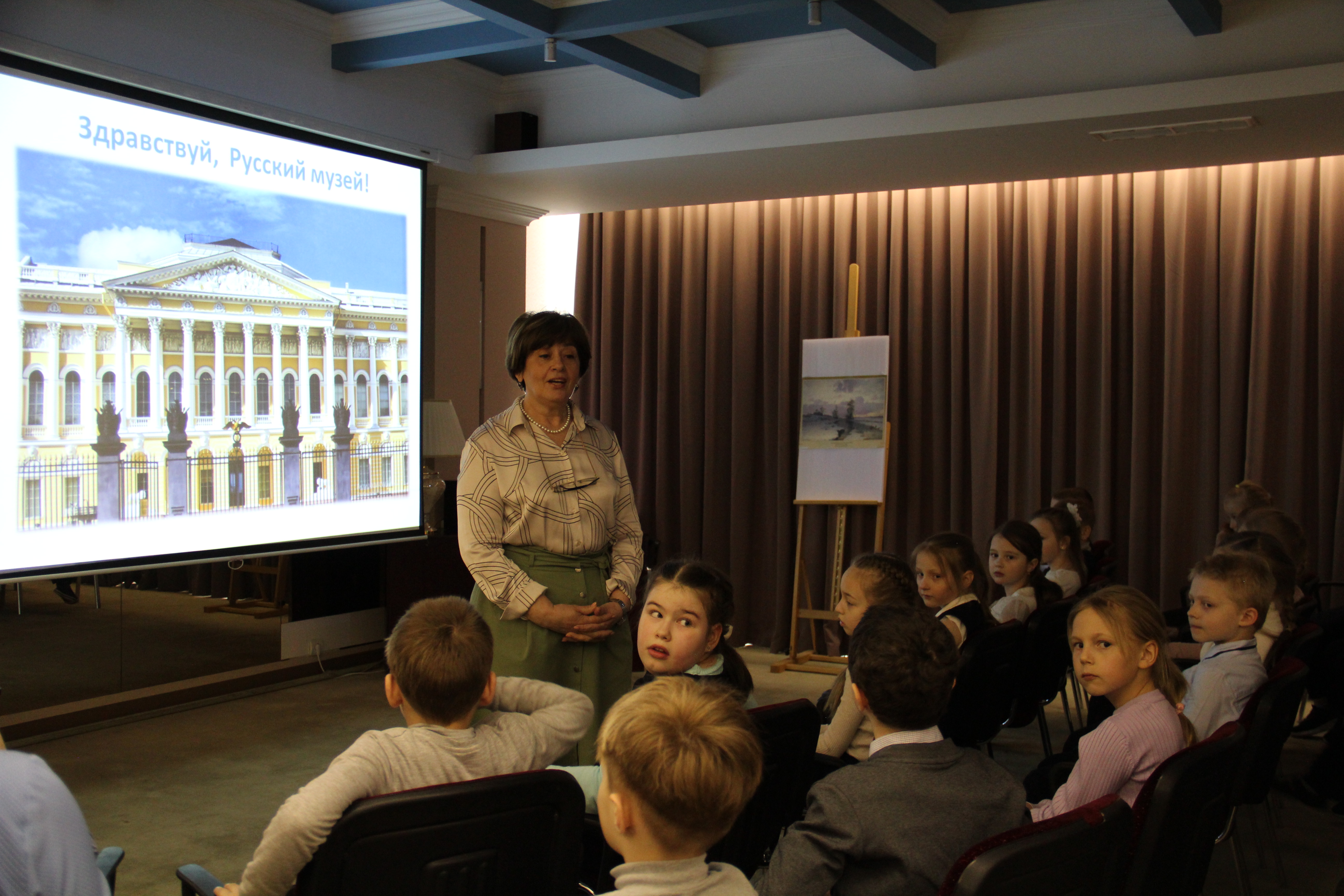 Экскурсия для первоклашек проходила в форме беседы, поэтому ребята с удовольствием включились в обсуждение и рассматривание картин знаменитых русских художников из коллекции Русского музея, а так же не забыли сказать, что в музее находится и большая коллекция скульптуры.
