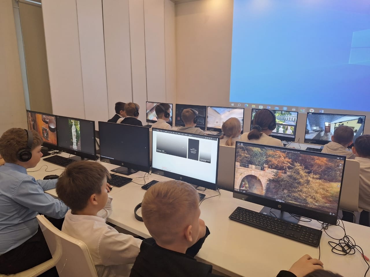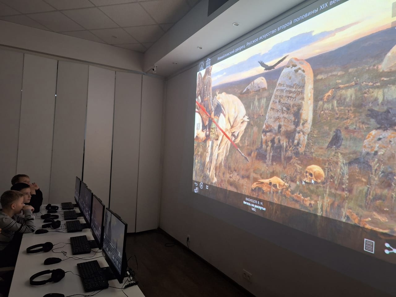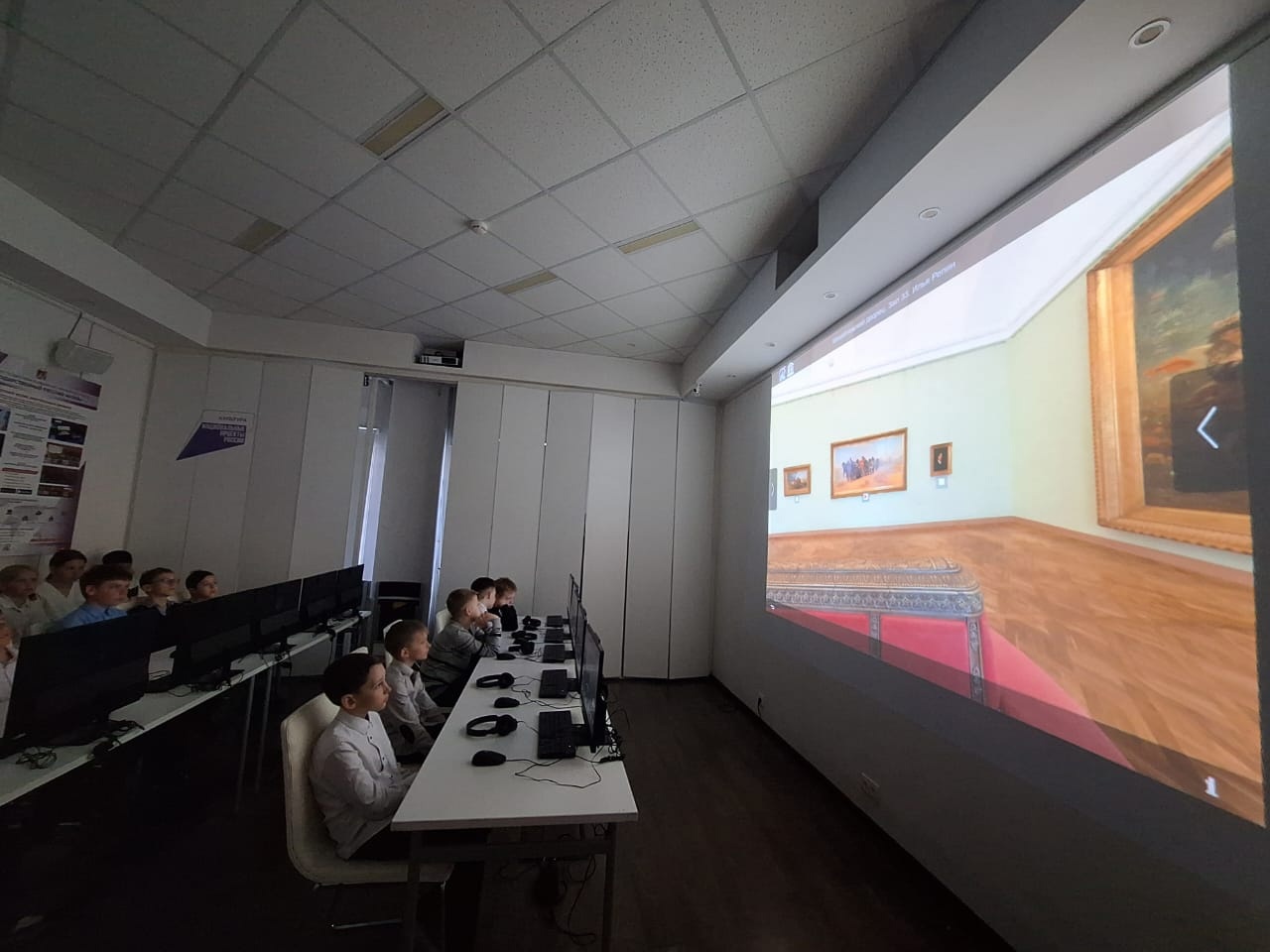 Во время виртуального тура по зданию они узнали об истории создания дворца, его архитекторе и знаменитых картинах, представленных в залах. Увидели произведения великих русских художников, таких как Иван Шишкин, Виктор Васнецов, Карл Брюллов и Василий Поленов. В одном из залов они познакомились с знаменитыми полотнами Айвазовского «Волна» и «Девятый вал».