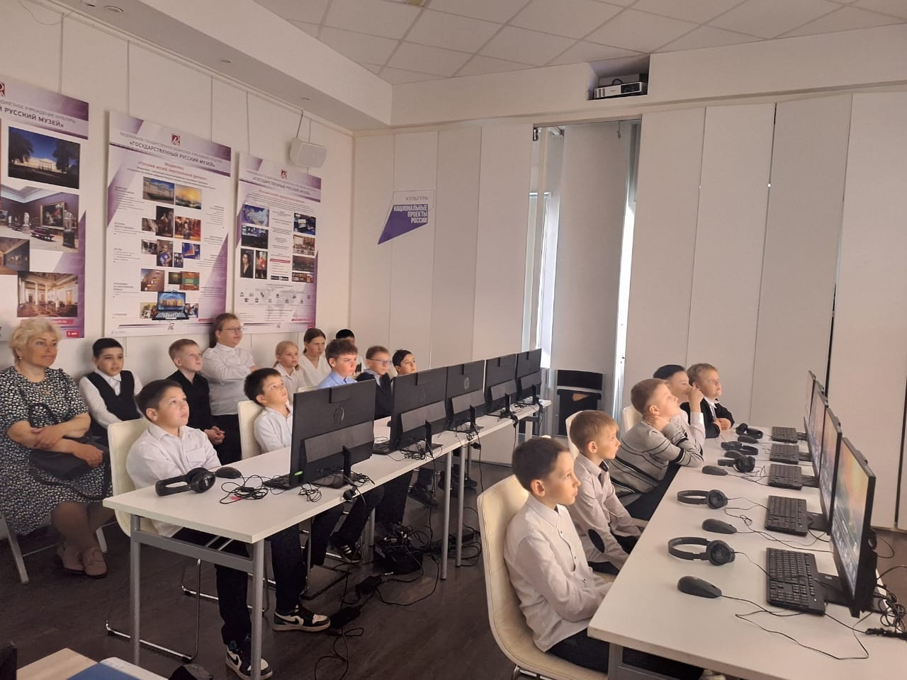 Сегодня нас посетили учащиеся Сош №32. Знакомство с творчеством русских художников, начавшейся с экскурсии по выставку «Русское искусство: от классики до модерна» в Большом зале, продолжилось в виртуальном филиале Русского музея, где ребята отправились в Михайловский дворец.