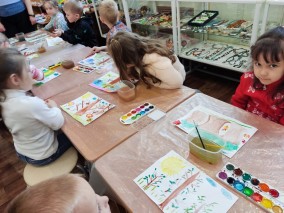 Воспитанники детского сада, побывавшие в виртуальном филиале Русского музея, посмотрели фильм «В мастерской художника», посвященный рисованию деревьев. Ребята узнали много нового о том, как правильно изображать эти величественные растения. Они увидели, как начинать работу над рисунком, где располагаются толстые ветви и тонкие веточки, что такое крона и какой она бывает разной.