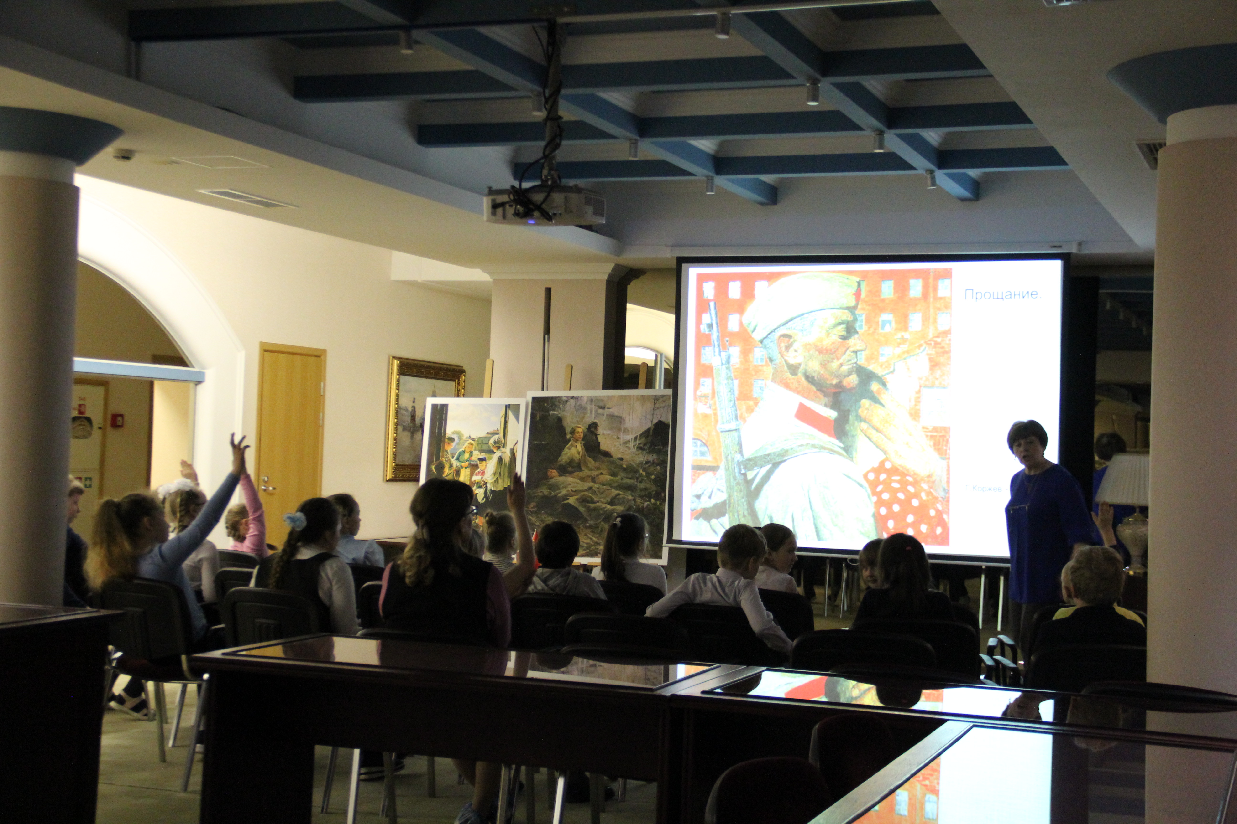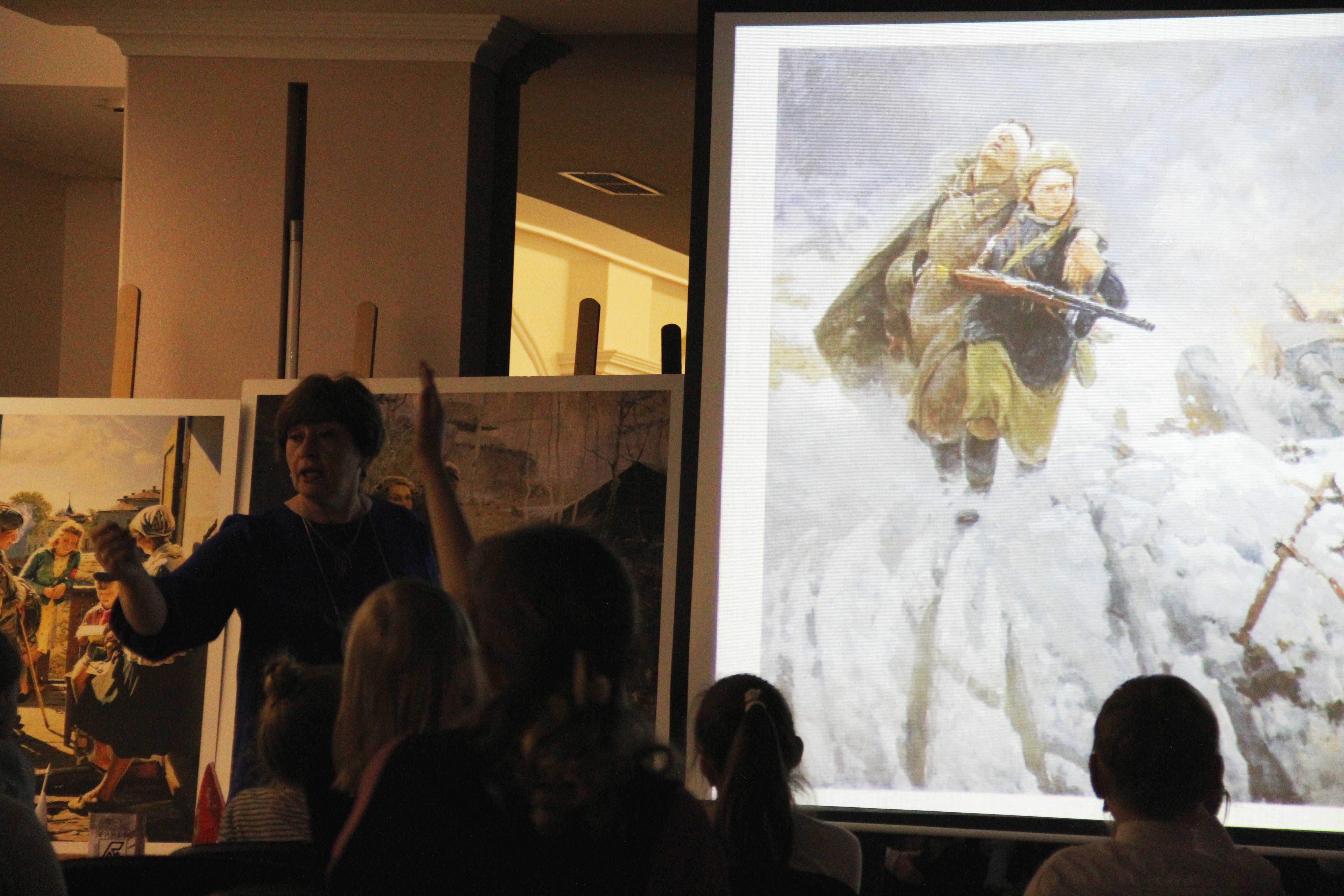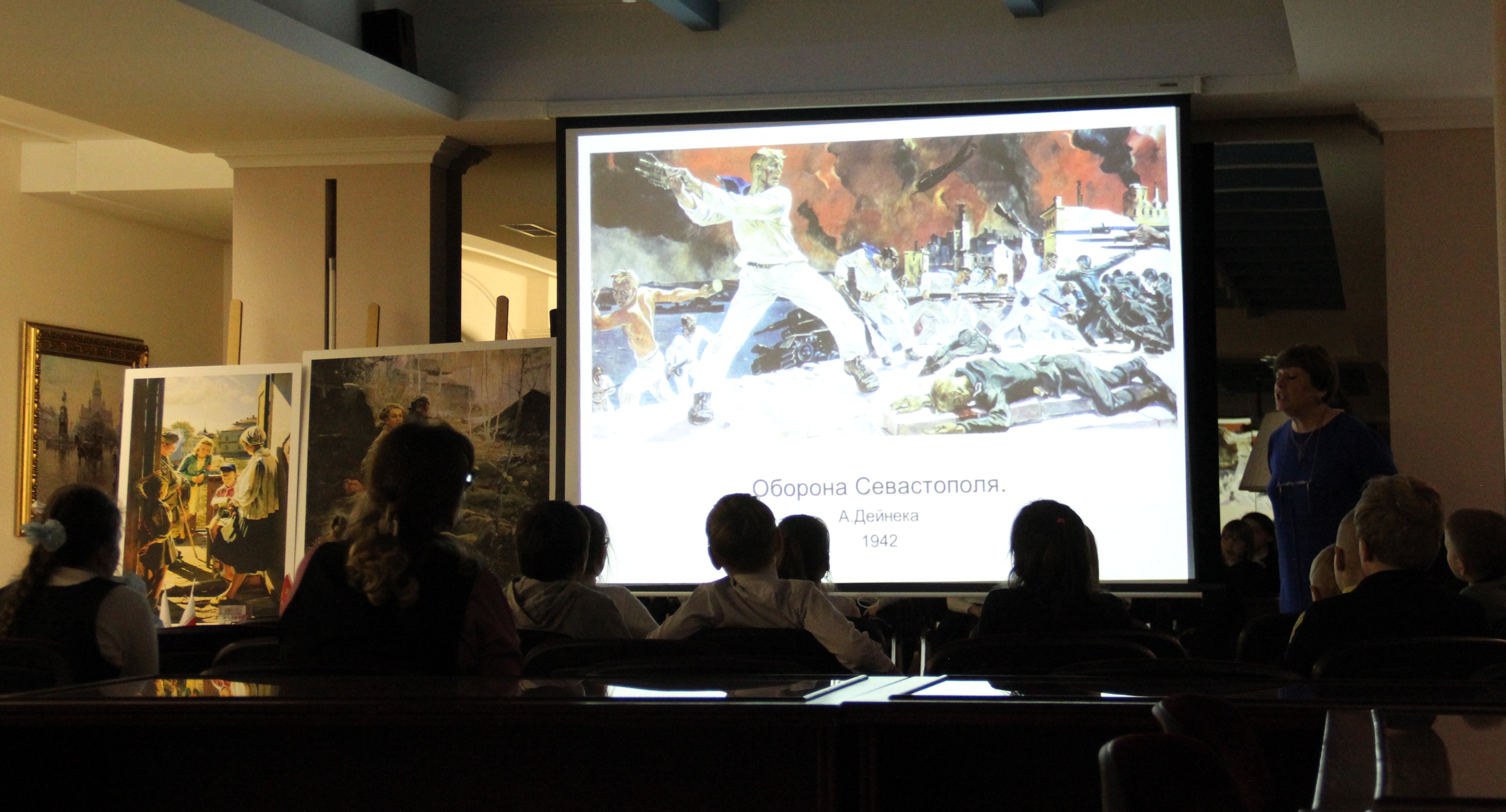 На занятии ребята узнали, что 9 мая 1944 года, над Севастополем был поднят советский военно-морской флаг – символ освобождения Крымского полуострова от немецко-фашистских захватчиков. К 80-летию освобождения города, особое внимание уделили картине А. Дейнека «Оборона Севастополя», рассказали детям о мужестве и стойкости советских моряков, об истории создания картины и о творчестве художника. В собрании Русского музея много произведений, рассказывающих о героях, приближавших Победу.