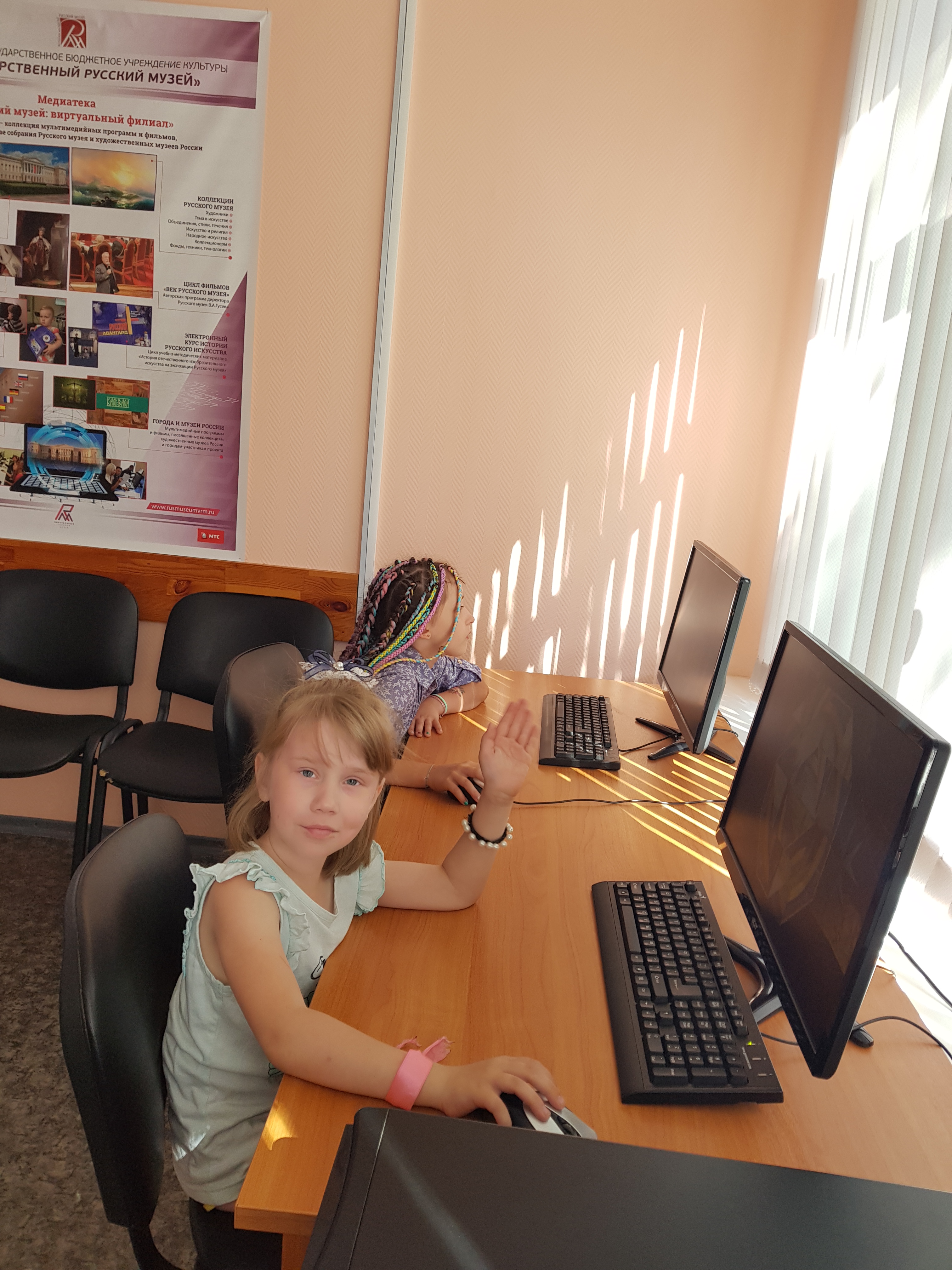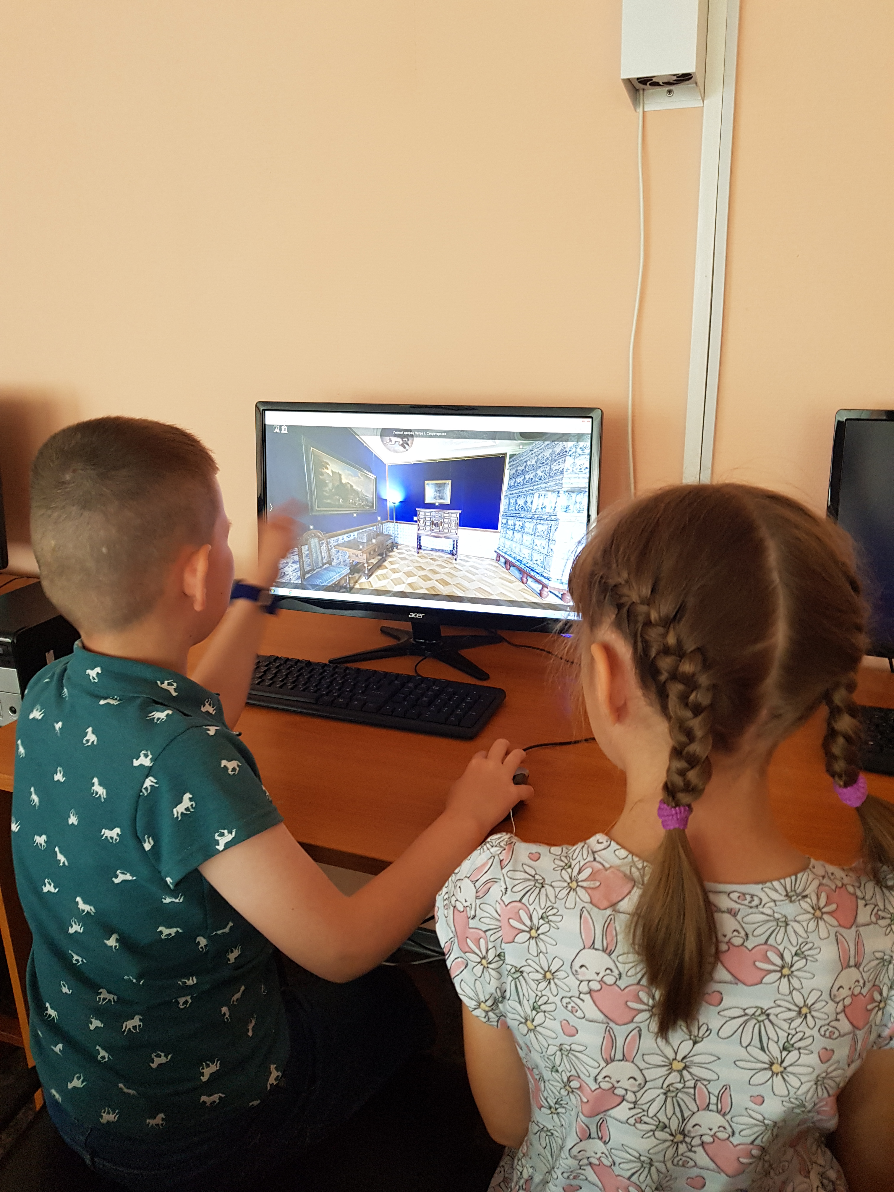 Ребята познакомились с Русским музеем , а в частности с разделом «Народное искусство» из коллекции онлайн ресурсов. Девочки с интересов рассматривали украшение и женские наряды разных эпох, сравнивая с современной модой. А мальчики выбрали для себя виртуальный тур «Летний дворец Петра» и онлайн игру «Замок».