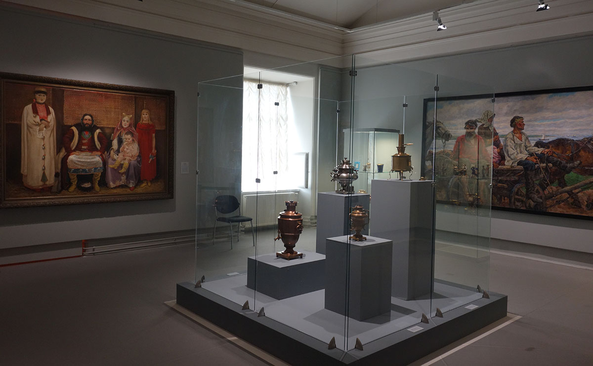 Выставку дополняют произведения декоративно-прикладного искусства и большое количество предметов нумизматики: жетоны, акции, векселя, облигации, квитанции, расчетные листы, паевые свидетельства. В своей совокупности экспозиция дает представление о жизни знаменитых купеческих династий Строгановых, Яковлевых, Громовых, Сапожниковых, Злобиных и других.