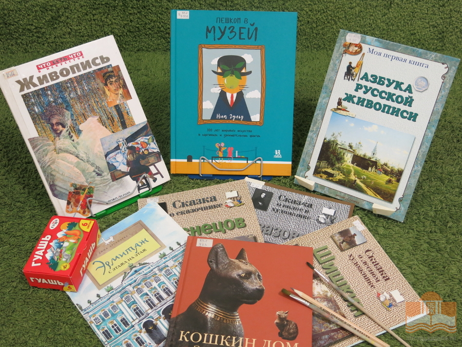 Книжная выставка, посвященная русскому искусству, также привлекла внимание ребят.