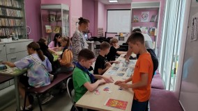 На занятии ребята из летнего лагеря при школе №506 в игровой форме знакомились с народными промыслами. Мы обсуждали разные техники и материалы. Разглядывали ложки и вазы, свистульки и шкатулки из дерева, глины, бумаги. Узнали,что можно вырезать по дереву и кости, делать шкатулки из бересты и плести кружево. Медиатека виртуального филиала помогла "посетить" залы в Русском музее, которые посвящены народным промыслам и рассмотреть шкатулки, жостовские подносы, хохломские тарелки и ложки. Дети с большим интересом погрузились в этот увлекательный мир творчества, задавали вопросы, разглядывали богородского мишку с балалайкой.