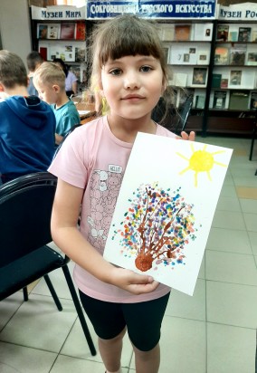 Кляксография – это один из увлекательных творческих процессов. В этом убедились малыши 1 отряда с летней площадки школы № 9. Библиотекарь отдела искусств ЦГБ Галина Черемисова, используя рубрику из медиатеки» Русский музей: виртуальный филиал», заинтересовала детей нетрадиционной техникой рисования. После знакомства с мультяшным персонажем Фафалей, который окунул ребят в мир облаков, луж и разводов, дети с воодушевлением стали намеренно наносить водянистые красочные пятна на бумагу, раздувать их с помощью трубочек, дорабатывать образы кисточками и ватными палочками. В итоге у детей получились волшебные сказочные деревья или кустарники.