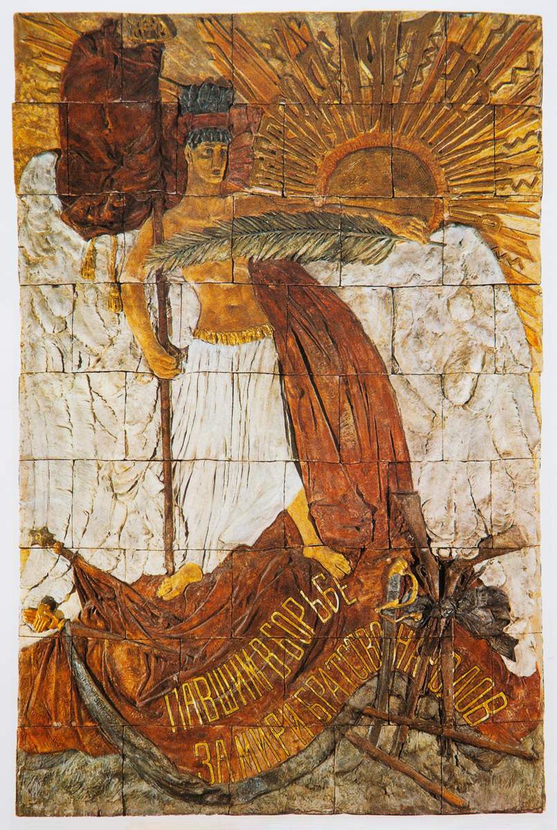 Сразу после революции Коненков принимает активное участие в реализации ленинского плана монументальной пропаганды. Созданная им из тонированного цемента мемориальная доска «Павшим в борьбе за мир и братство народов» была установлена в Москве на стене Сенатской башни Кремля в ноябре 1918 года. А 1 мая 1919 года на Красной площади ‒ на Лобном месте ‒ была установлена скульптурная композиция «Степан Разин», фрагменты которой также хранятся в Русском музее.