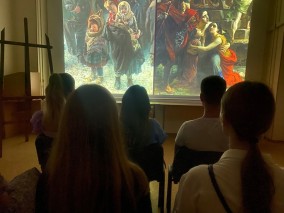 В рамках акции «Ночь кино-2024» 30 августа в Севастопольском филиале РЭУ им. Г.В.Плеханова был представлен эксклюзивный мультимедийный фильм, посвященный реставрации картины К.Е. Маковского «Народное гулянье во время масленицы на Адмиралтейской площади в Петербурге». Показ фильма был приурочен к 185-летию со дня рождения художника К.Е. Маковского, выдающегося мастера исторической и жанровой живописи. В акции приняли участие студенты-старосты с разных курсов, которые в эти дни помогали подготовить университет к началу учебного года. Этот захватывающий фильм позволил им узнать много нового о самом художнике и самое главное, как восстанавливаются шедевры живописи, тем самым ближе познакомится с профессией реставратора.