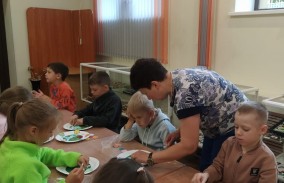 В конце посещения дошкольники выполнили небольшую «летнюю» аппликацию.