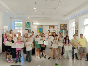 Педагоги и учащиеся ДМШ № 1 имени Я. И. Гуревича (отделение скульптурной живописи) посетили выставку В. К. Кушелевой.