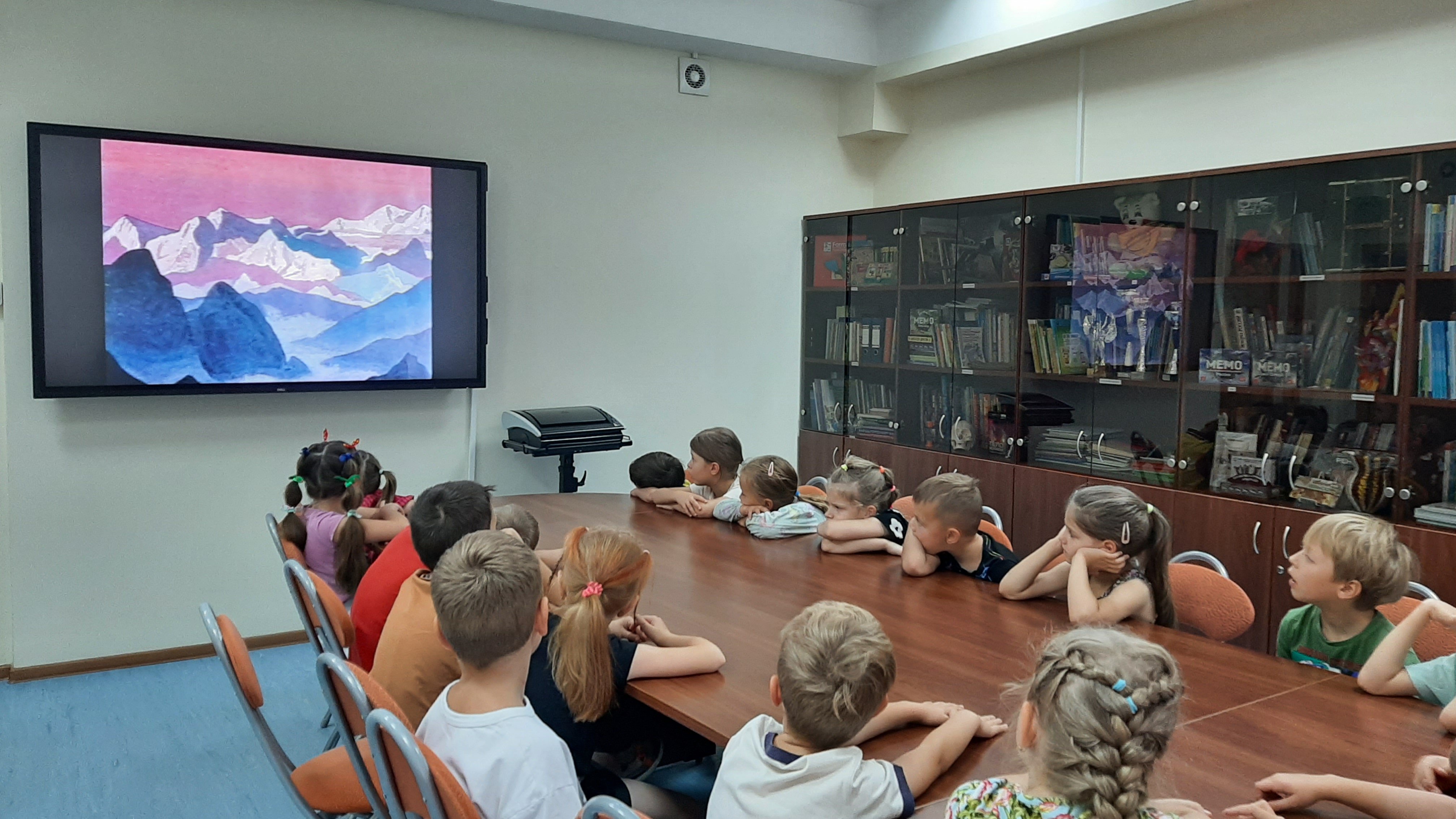Занятие «Облака и горы». На занятии прошло рассмотрение некоторых произведений Николая Константиновича Рериха. Дети очарованы изображением горный хребтов с голубым небом, облаками в небе над вершиной горы и под ней. Яркие краски полотен Николая Константиновича способствовали проявлению воспоминаний о проведенном лете в рисунках о самых ярких летних впечатлениях.