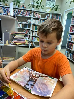 В ходе мероприятия ребята поучаствовали в творческом мастер-классе "Растущие деревья", годе в технике "живопись по мокрому" попытались нарисовать волшебный лес.