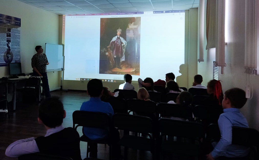 Ребята с большим интересом рассматривали картины, на которых был изображён Павел I в разные периоды своей жизни, включая его детские годы. Школьникам было интересно узнать, что и император тоже, как и все люди, сначала был маленьким мальчиком, учился разным наукам. Они узнали много нового о личности этого императора, о его характере и поступках.