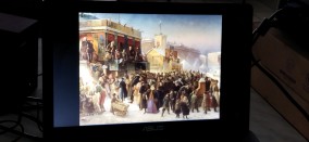 Смогли заглянуть в реставрационную мастерскую и увидеть, как происходит процесс реставрации художественных полотен. Для присутствующих был представлен мультимедийный фильм Русского музея «Реставрация картины К. Маковского» Народное гулянье во время масленицы на Адмиралтейской площади в Петербурге».
