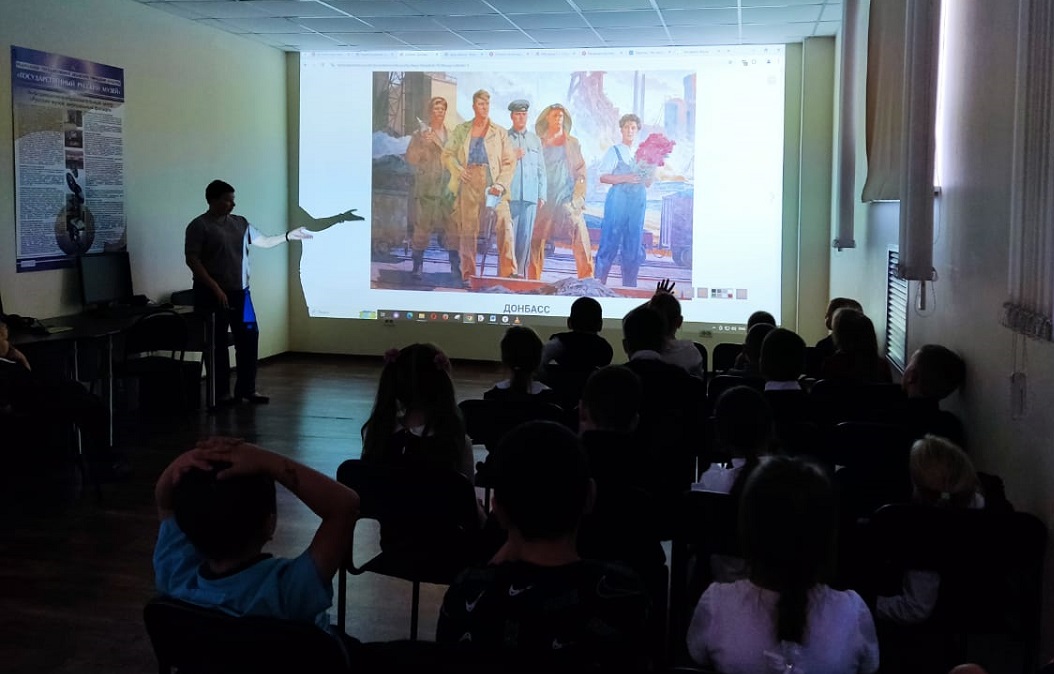 В честь этой памятной даты в виртуальном филиале Русского музея для учеников начальных классов был проведён тематический час, посвящённый шахтёрам Донбасса.