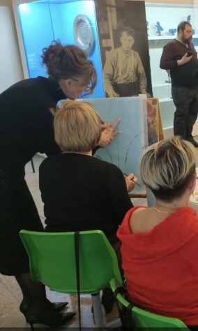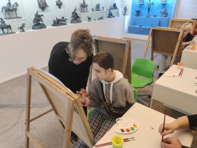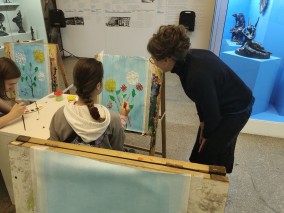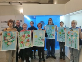 В рамках Ночи искусств состоялся мастер класс для посетителей с частичной и тотальной потерей зрения. Под руководством самарского художника, председателя Самарского регионального отделения Союза художников России Дмитрия Мантрова участники создали цветочные натюрморты с осенними цветами.В первом отделении вниманию посетителей был предложен фрагмент в/фильма В.Гусева "Федор Толстой" с тифлокомментариями, посвященный натюрмортам ссо смородиной и цветами. Во втором - были отработаны приемы работы с кистями разного формата и акрилом (палитра из пяти цветов); движения рук для передачи изображения стеблей и соцветий предложенных для осязания, обоняния растений, по тонированной бумаге, закрепленной на мольберте.