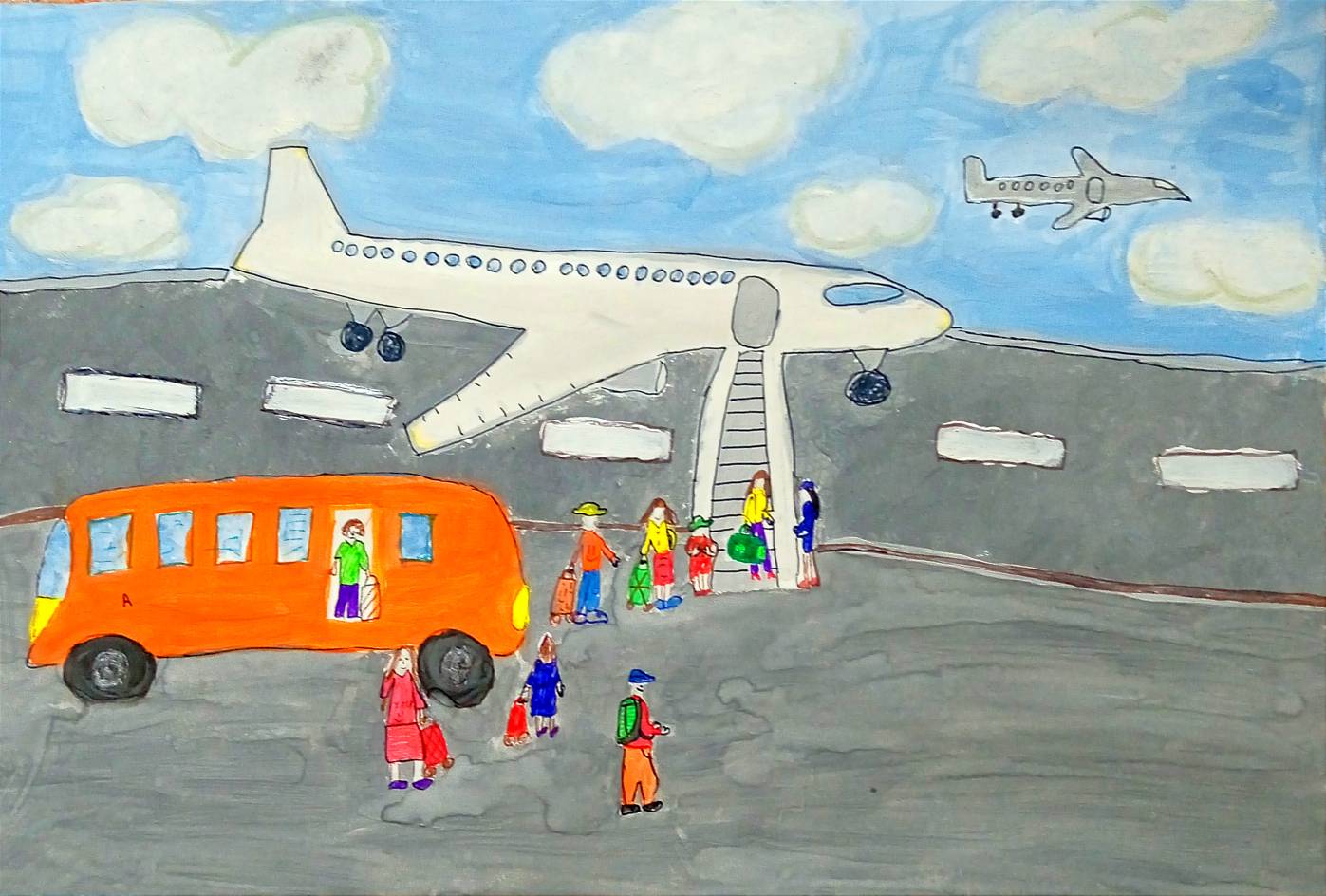 Первое место получает Нежданова Милана из школы-интерната «Семья», 14 лет, (педагог Осипова Н.В.) «О чем мечтаю» за многоплановую сцену в аэропорту с верно подмеченными масштабами механизмов и людей.