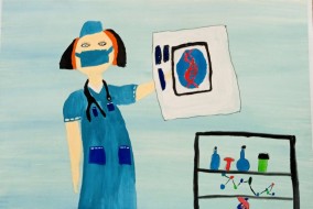 Второе место присуждено Бурумбаевой Рузалии, 10 лет, из школы-интерната №5 (педагог Дворяк С.М.) за рисунок «Моя будущая профессия». Несмотря на возраст, девочка уже знает, что станет медиком. Работа насыщена множеством интересных подробностей и деталей.