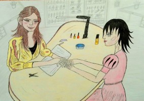 Поощрительный приз «За участие» получает воспитанник школы-интерната №5 Ядгаров Тимур, 16 лет (педагог Дворяк С.М.) за красочное раскрытие темы в гуаши «Мечта: полет над морем». Рисунки Тимура уже неоднократно отмечали в наших конкурсах. Поощряется также Пензина Елизавета, 16 лет, из центра «Родник (педагог Лушникова И.В.) на рисунке которой «Я – гуру маникюра» очень детально, со знанием дела изображена сцена из салона красоты.
