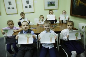 Тематическое занятие состояло из двух частей: просмотра фильма медиатеки «Шишкин» и творческого задания. Ребята нарисовали могучий дуб с раскидистой кроной и мощным стволом. Рисунок сначала выполнили в карандаше, а затем, также карандашами, но уже цветными, раскрасили свои произведения.