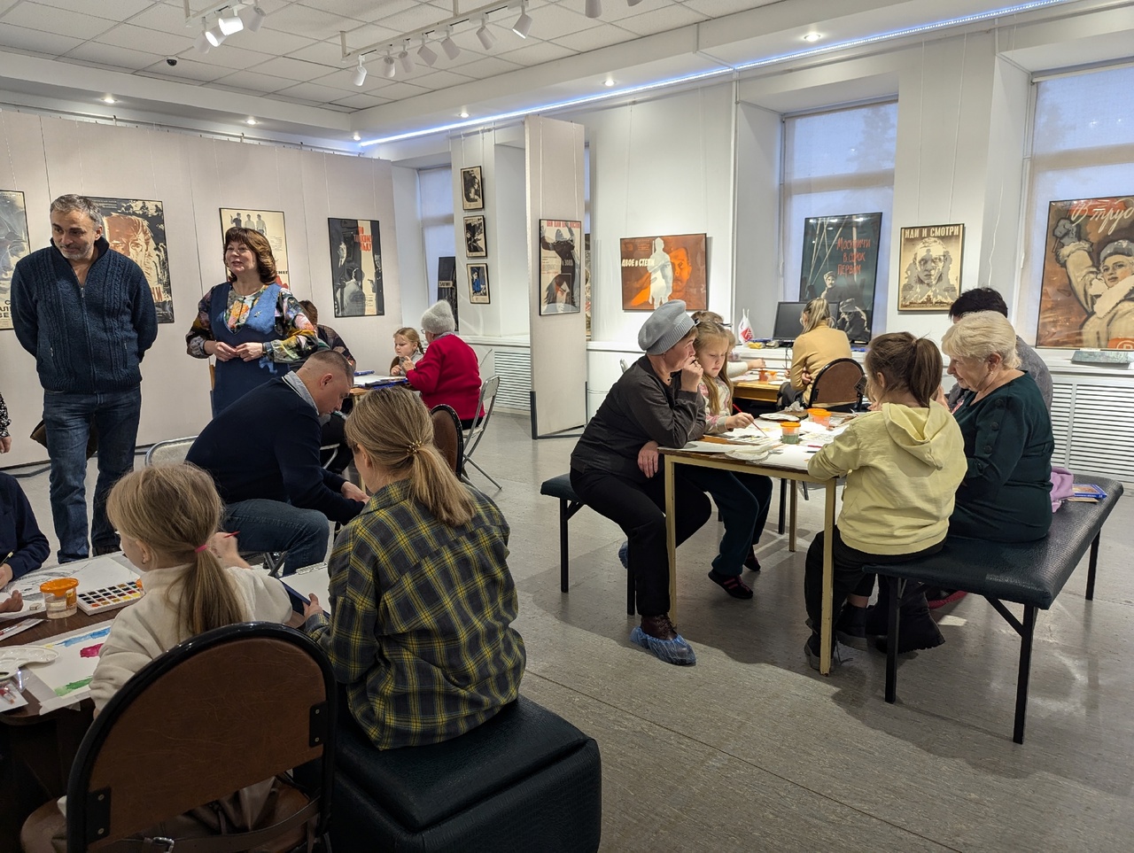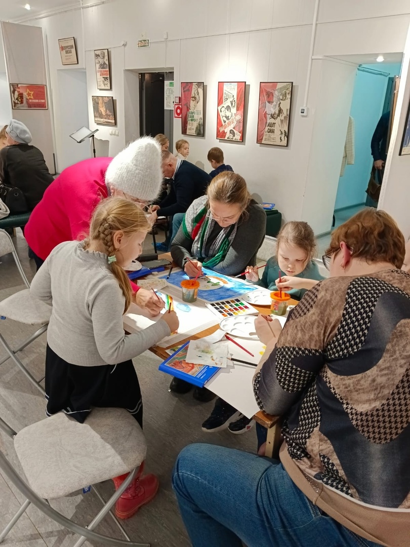 В мероприятии принимали участие учащиеся ДМШ №1 им. Я. И. Гуревича (студия ИЗО 'Передвижники") с мамами, папами, бабушками и своим преподавателем Лисиной Ириной Валерьевной. Ребята рисовали на свободную тему, показывая свое мастерство и включая взрослых в творческий процесс. Время пробежало незаметно - все были вовлечены в создание своего неповторимого шедевра. Рисунки действительно получились очень красивыми!