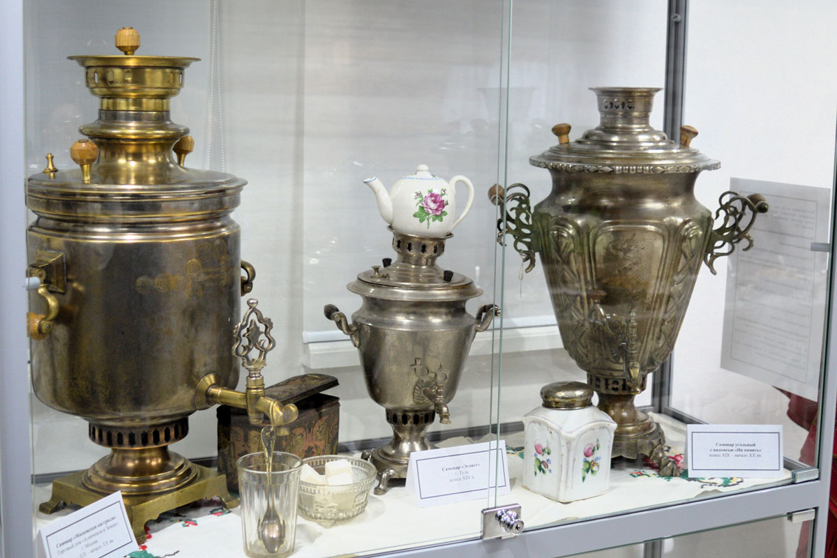 Уникальную коллекцию самоваров Геннадия Степановича Ненашева (жителя г. Новокуйбышевска) дополнили старинные и советские экспонаты из фондов Музея, а также коллекции «Русские куклы» и «Русский народный костюм». Автор работ – Хайруллина Наталья Анатольевна, мастер народных художественных ремёсел и промыслов Самарской области.