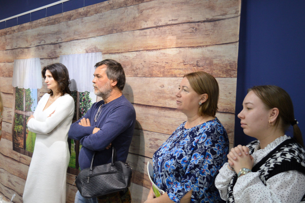 Зал виртуального филиала Русского музея, где состоялась встреча, предоставил возможность прикоснуться к искусству: теплую, уютную и дружелюбную атмосферу разбавили картины русских художников, на чьих полотнах воспета исконно русская традиция чаепития с самоваром:
