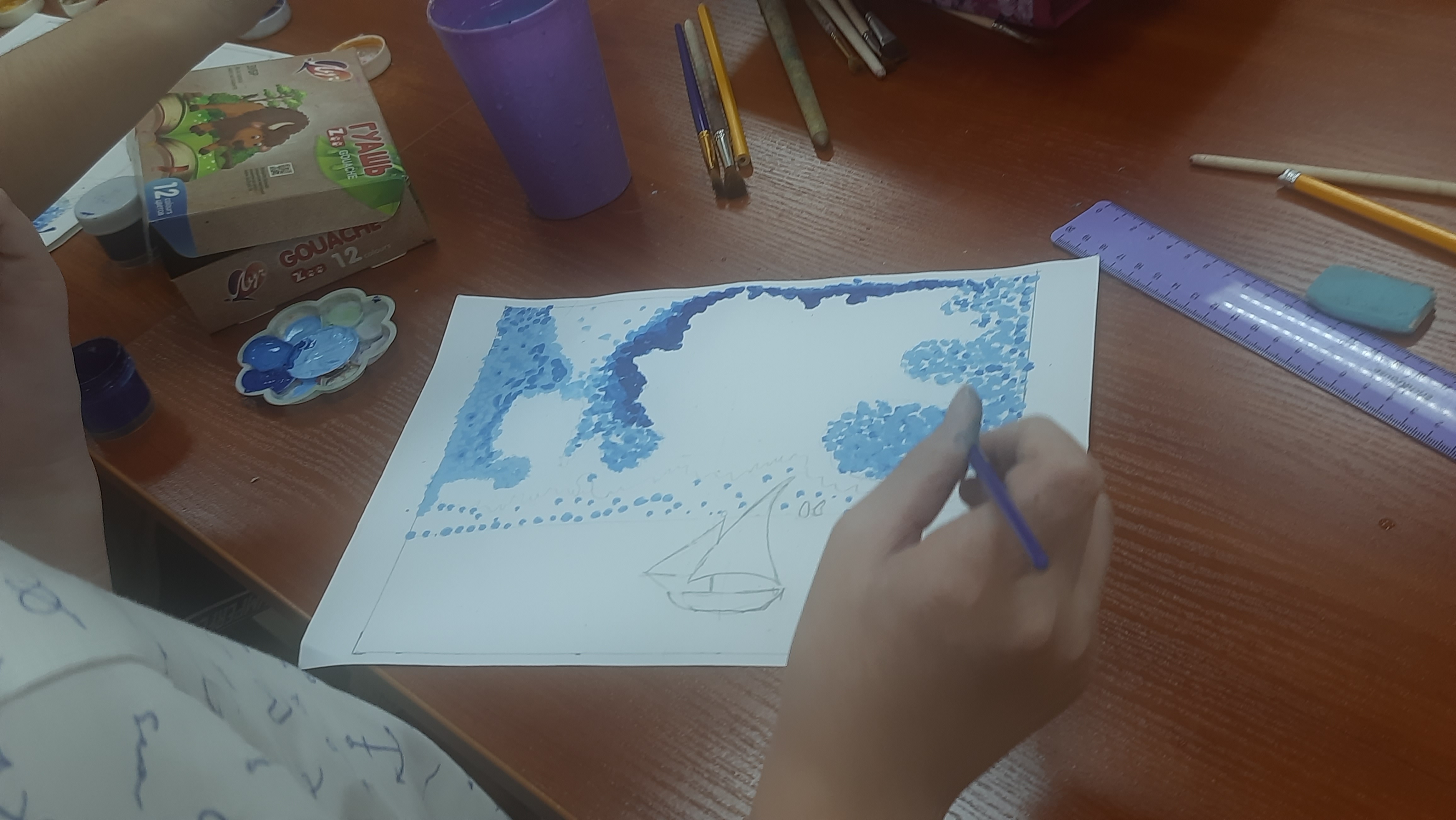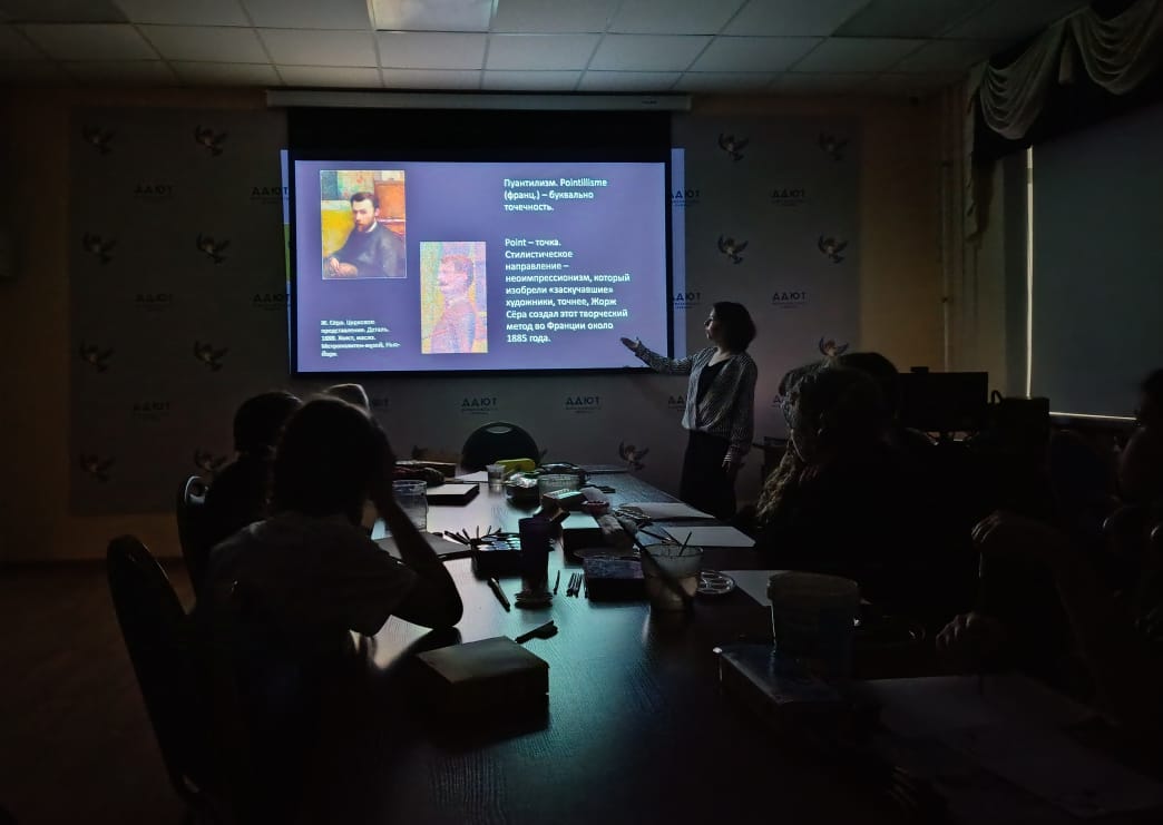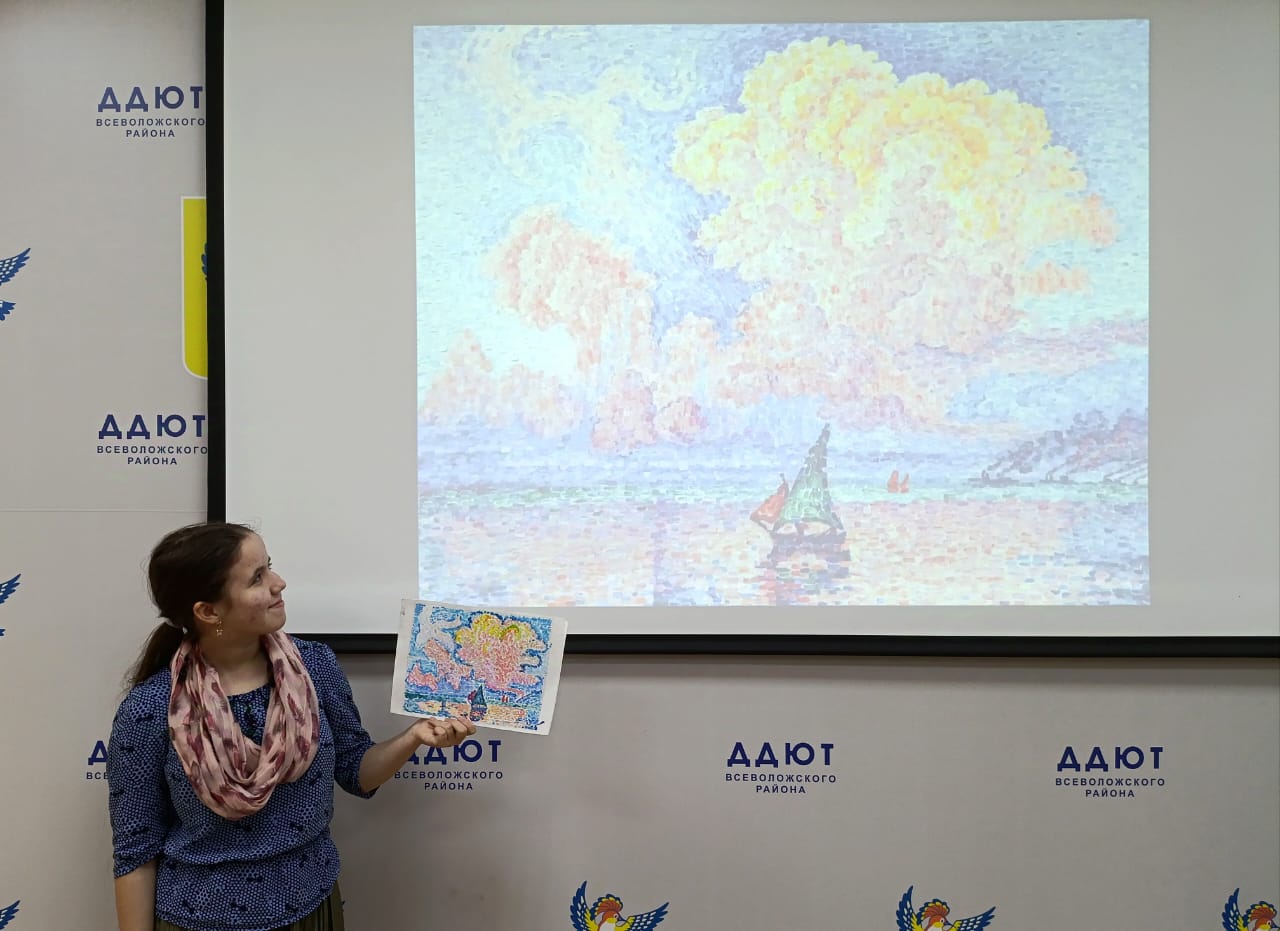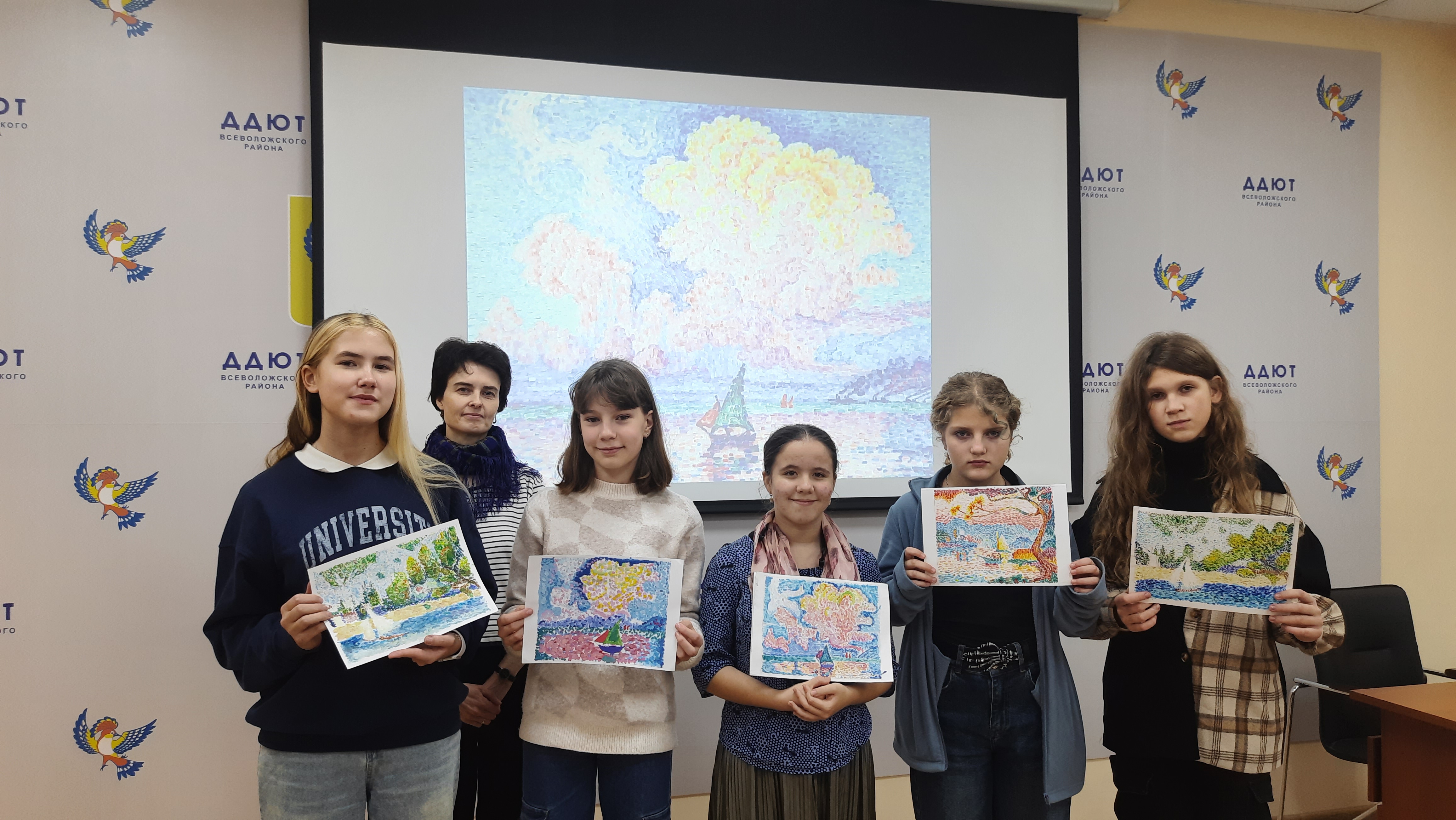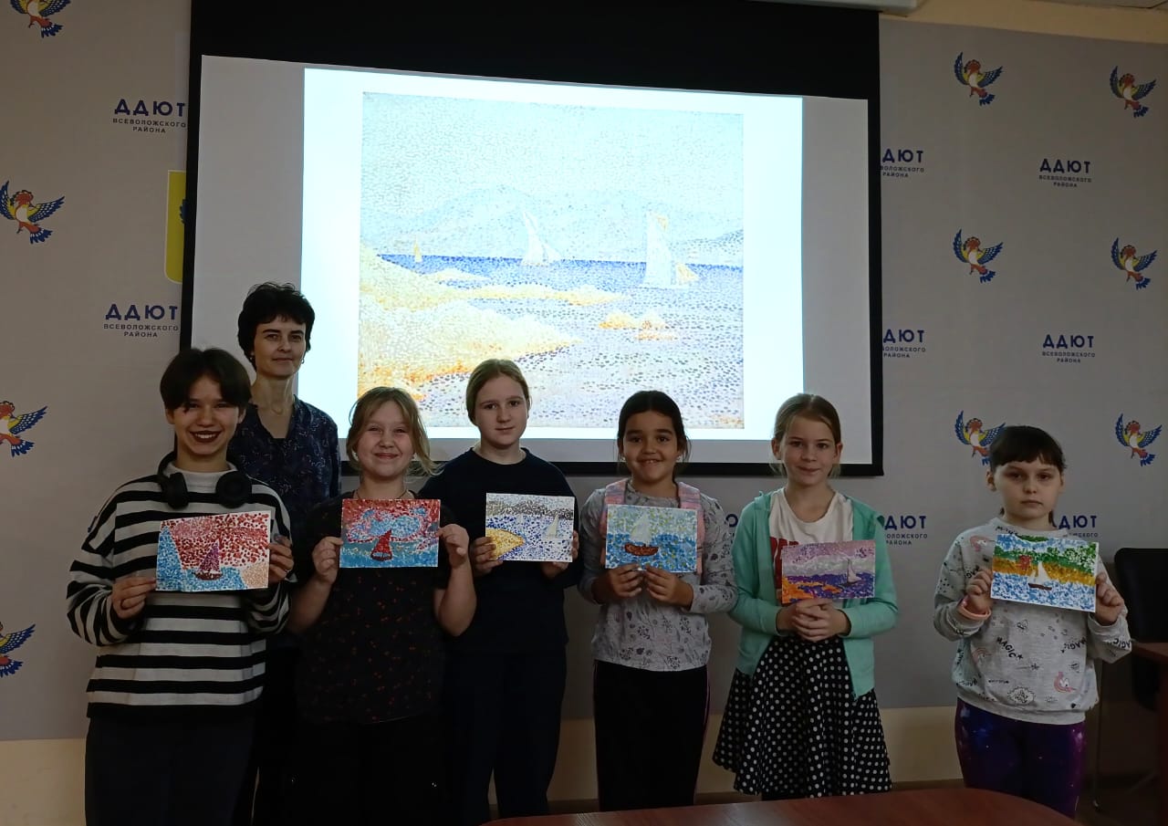 Учащиеся старшей и младшей групп творческого объединения "Мозаика" ДДЮТ Всеволожского района посетили ИОЦ «Русский музей: виртуальный филиал» при ДДЮТ, чтобы познакомиться с новыми стилями живописи и нарисовать копии картин в стиле пуантилизма.