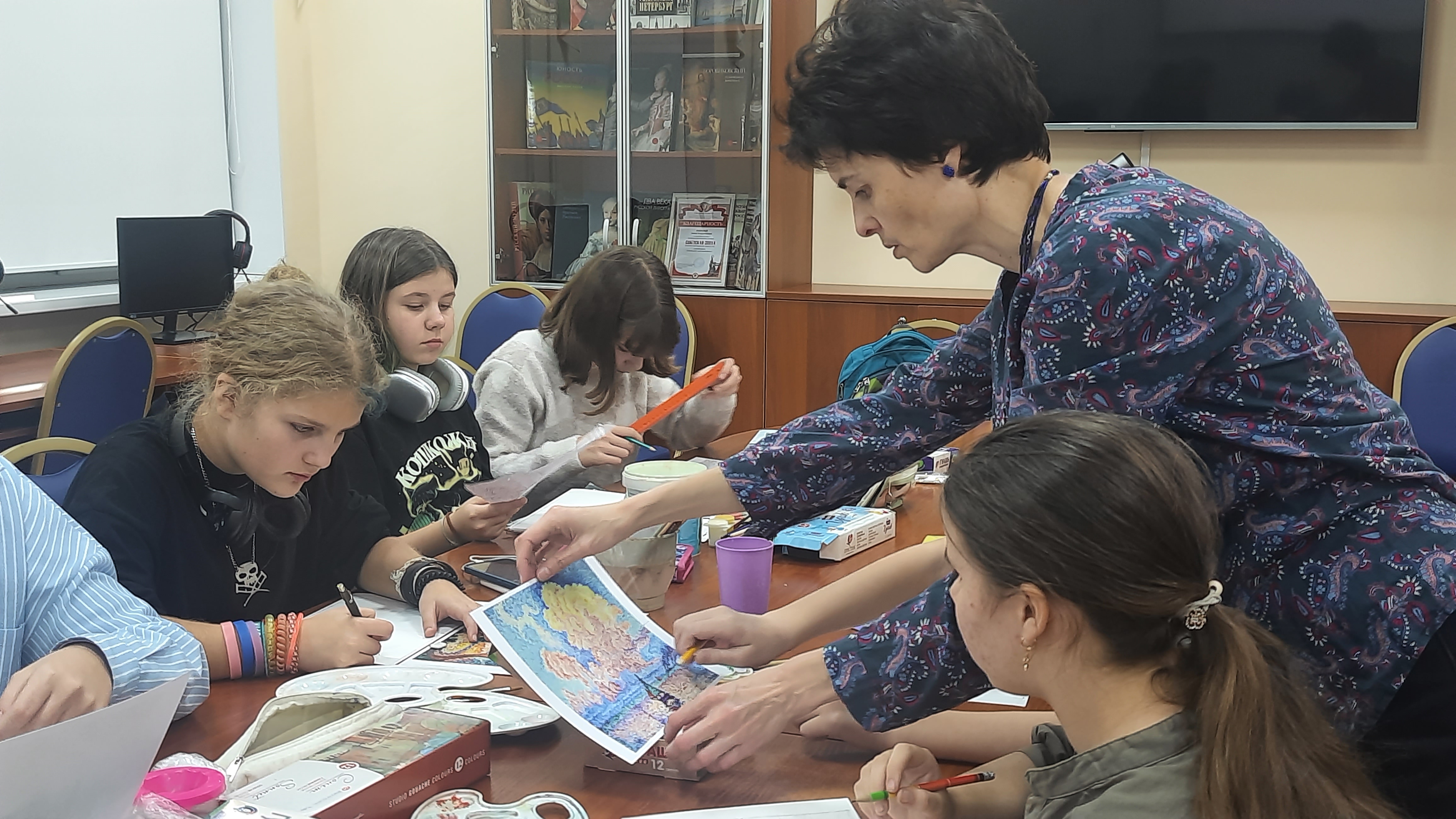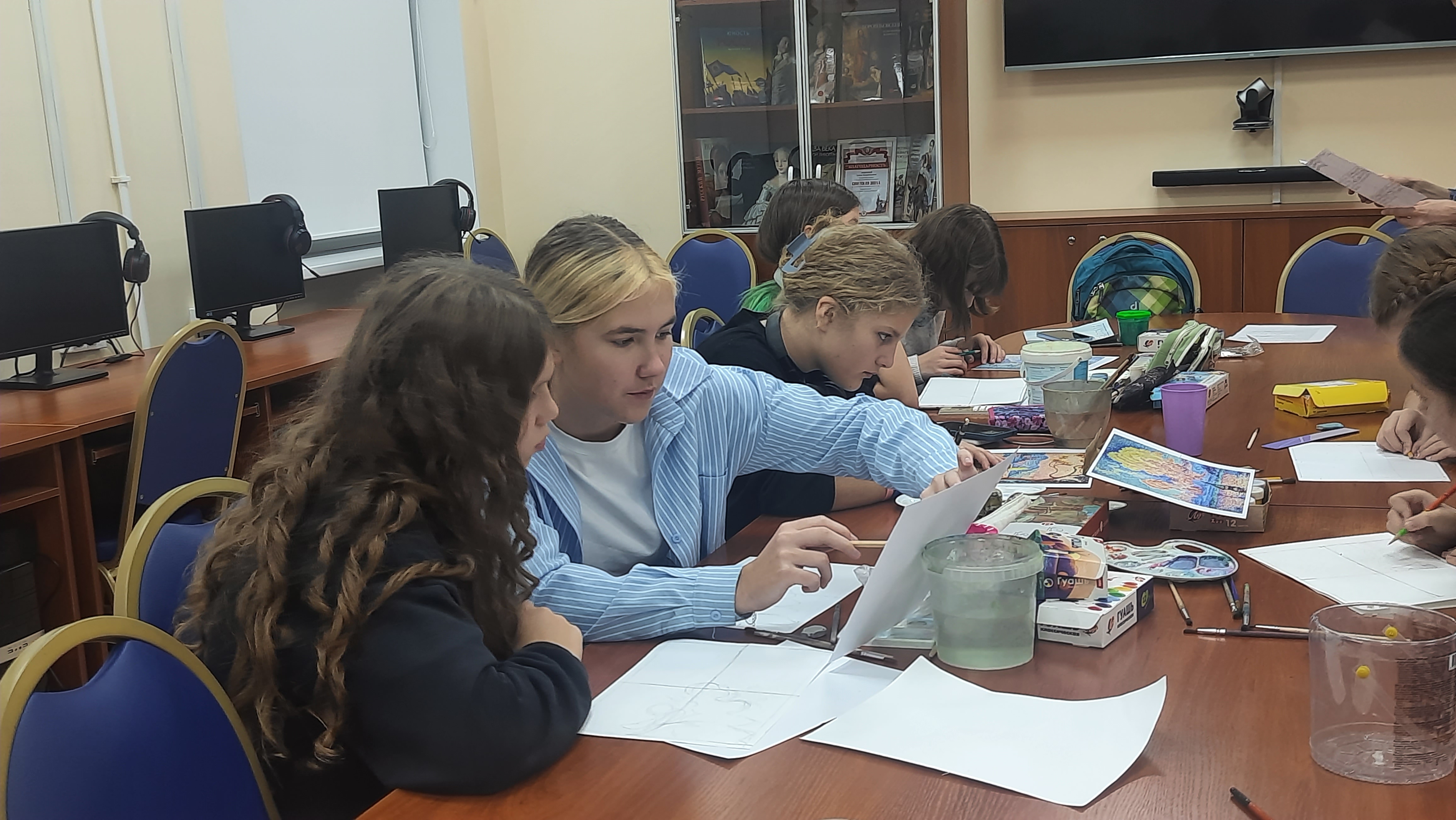 Важной частью занятия стало копирование художественного произведения. Руководитель творческого объединения, педагог дополнительного образования Ирина Борисовна Ивашко провела ребятам мастер-класс, объяснив нюансы нового творческого метода.