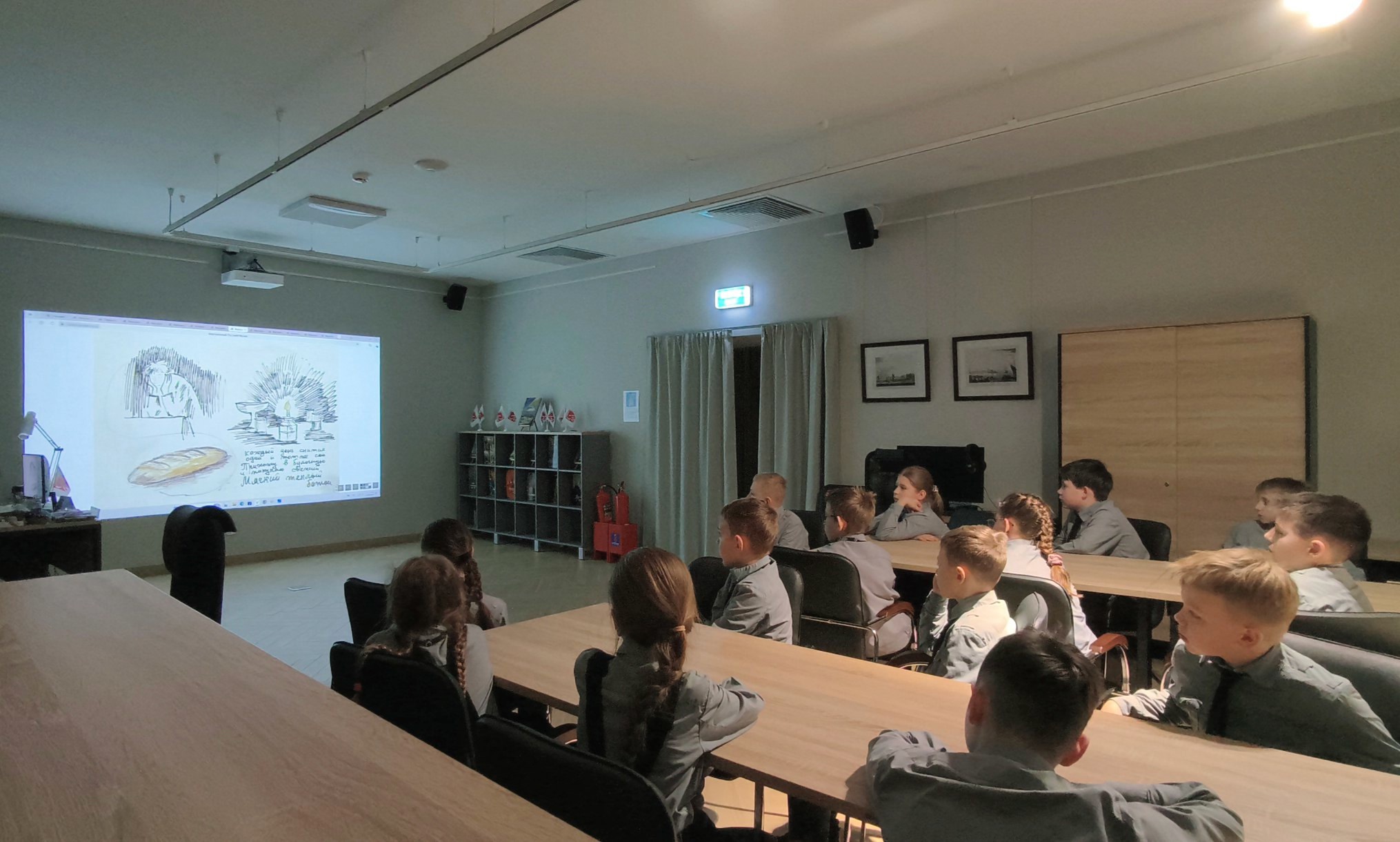 На занятии поговорили о юных ленинградцах, их повседневной жизни, трудностях и стойкости духа. Школьники с интересом рассматривали живописные и графические произведения В.П. Белкина, В.Н. Кучумова, С.Б. Юдовина, Д.П. Бучкина, Н.Х. Рутковского, А.Ф. Пахомова, В.А. Раевской-Рутковской из коллекции Русского музея. В качестве иллюстративного материала также использовались фотографии, материалы виртуального тура выставки «Помним!» и интерактивной мастерской «Дети блокады».