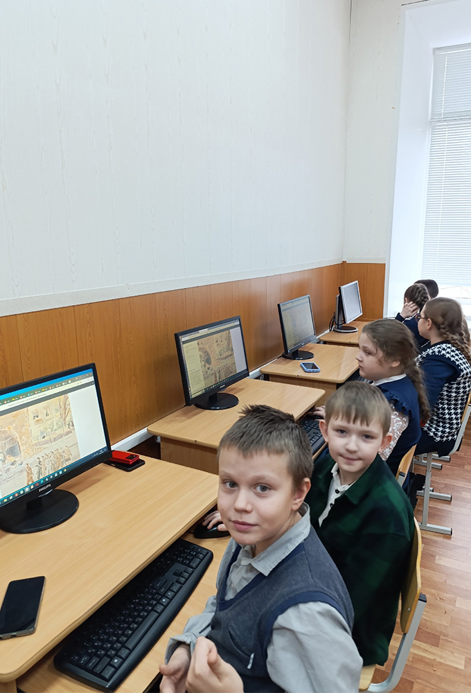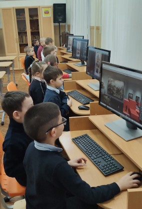 Переходя из зала в зал ребята посмотрели виртуальный тур «Память» и ознакомились с летописью блокадного Ленинграда, с образцами плакатного искусства объединения» Боевой карандаш», продуктовыми карточками, казначейскими билетами и монетами военного времени.