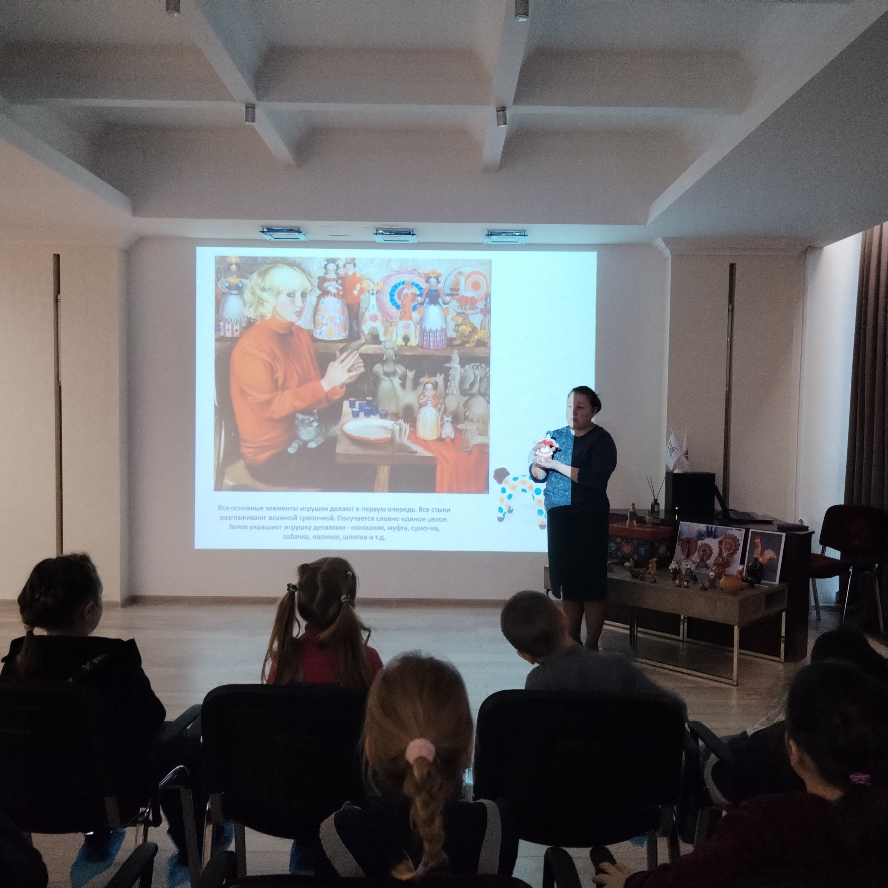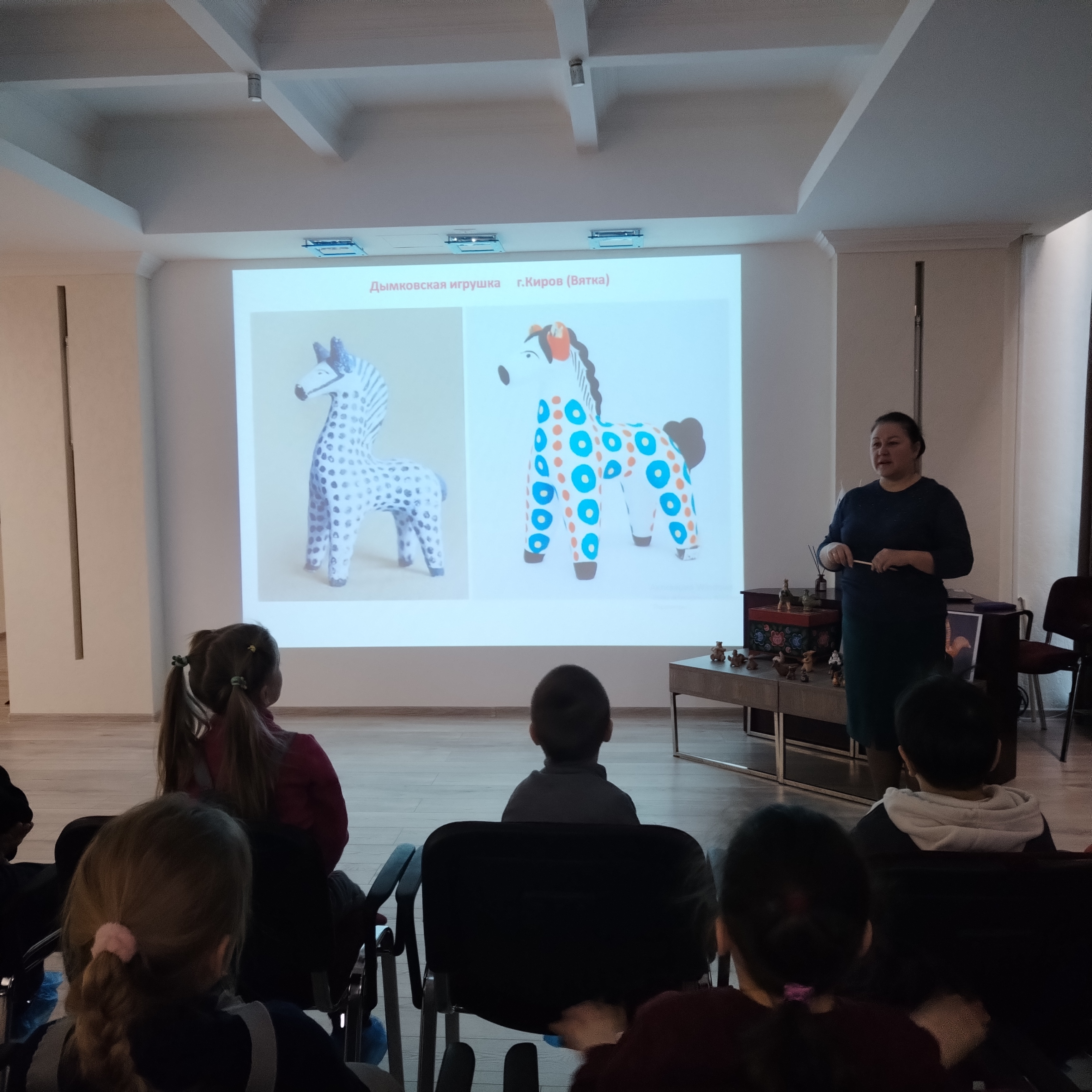 На экскурсии познакомились с дымковской и каргопольской игрушкой, нашли сходство и отличия.