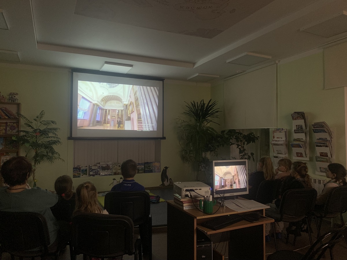 На занятии виртуального филиала посетители узнали об интересных экспонатах и коллекциях Русского музея в разделах медиатеки: «Художники», «Дворцы, залы, коллекции. Виртуальные прогулки». Благодаря сферическим панорамам можно было увидеть шедевры с разных сторон, а великие картины художников рассмотреть в каталогах картин музея.