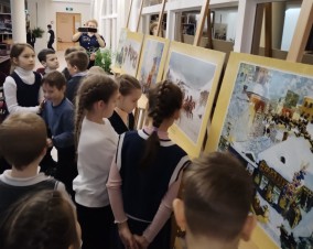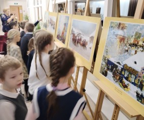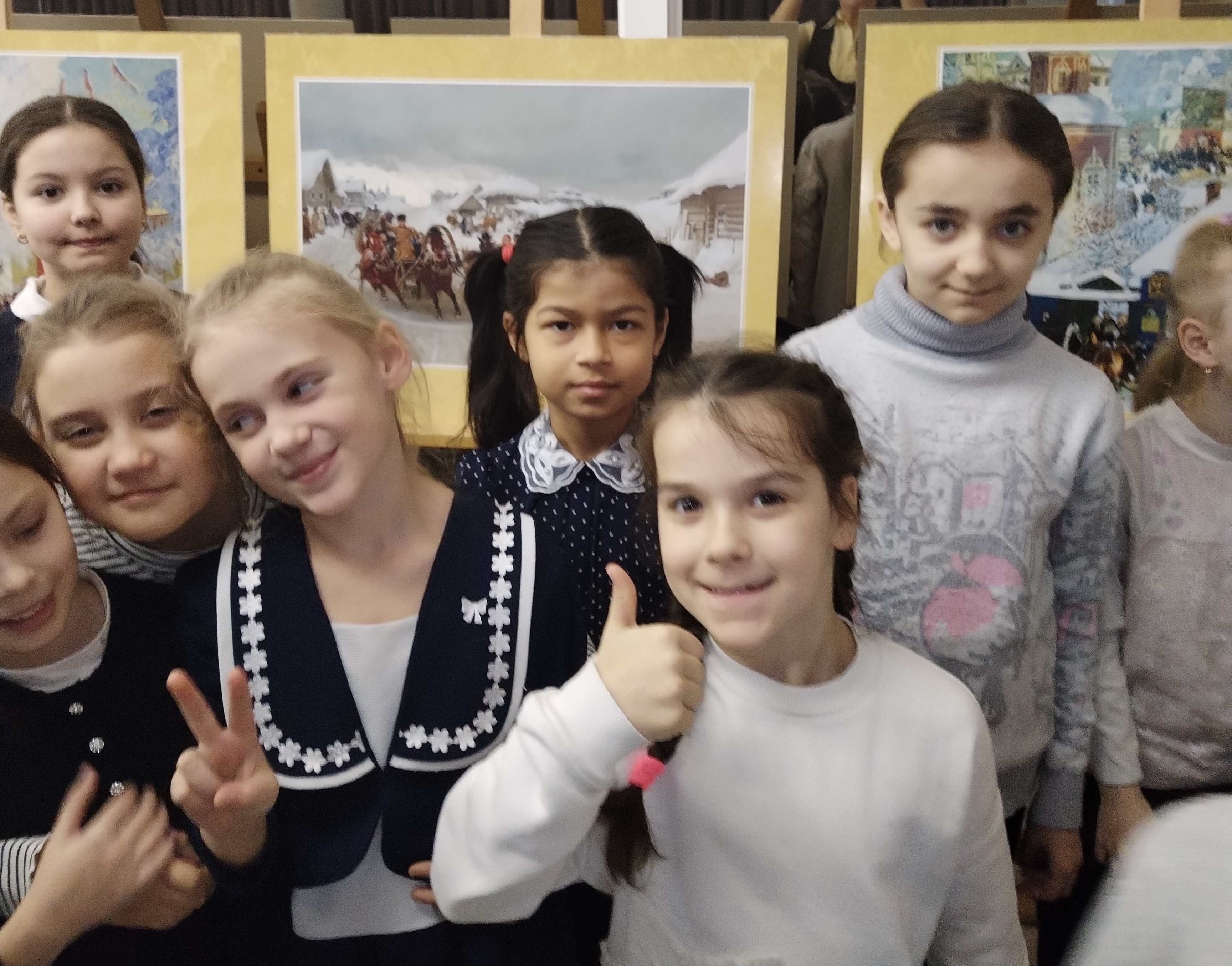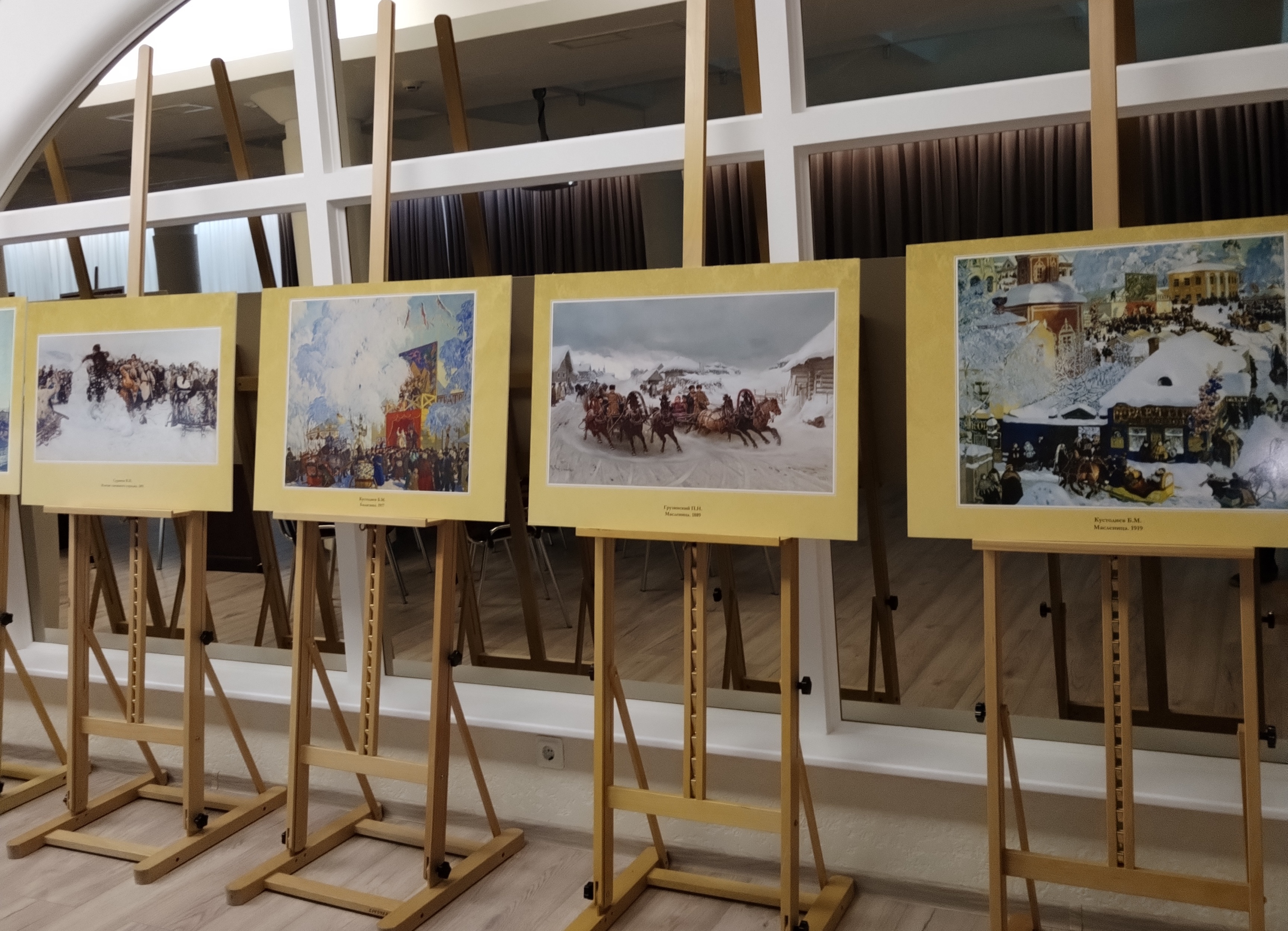 Коллекция Русского музея позволяет прекрасно знакомиться с традициями и обрядами праздника. Рассмотрели картины художника Бориса Кустодиева. А особое внимание уделили шедевру Константина Маковского «Народное гулянье во время Масленицы на Адмиралтейской площади в Петербурге».