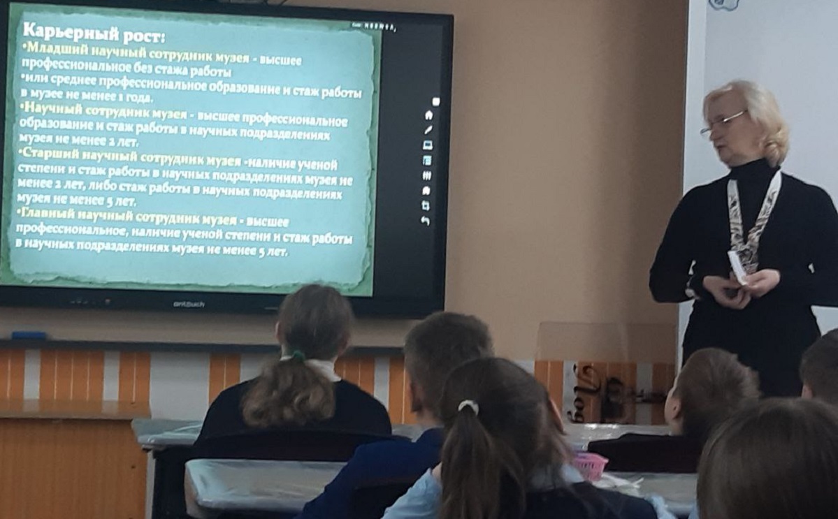 На занятии ребята познакомились с должностными обязанностями научного сотрудника музея, с учебными заведениями, в которых можно получить необходимое образование. Учащиеся узнали о возможностях трудоустройства и карьерного роста.